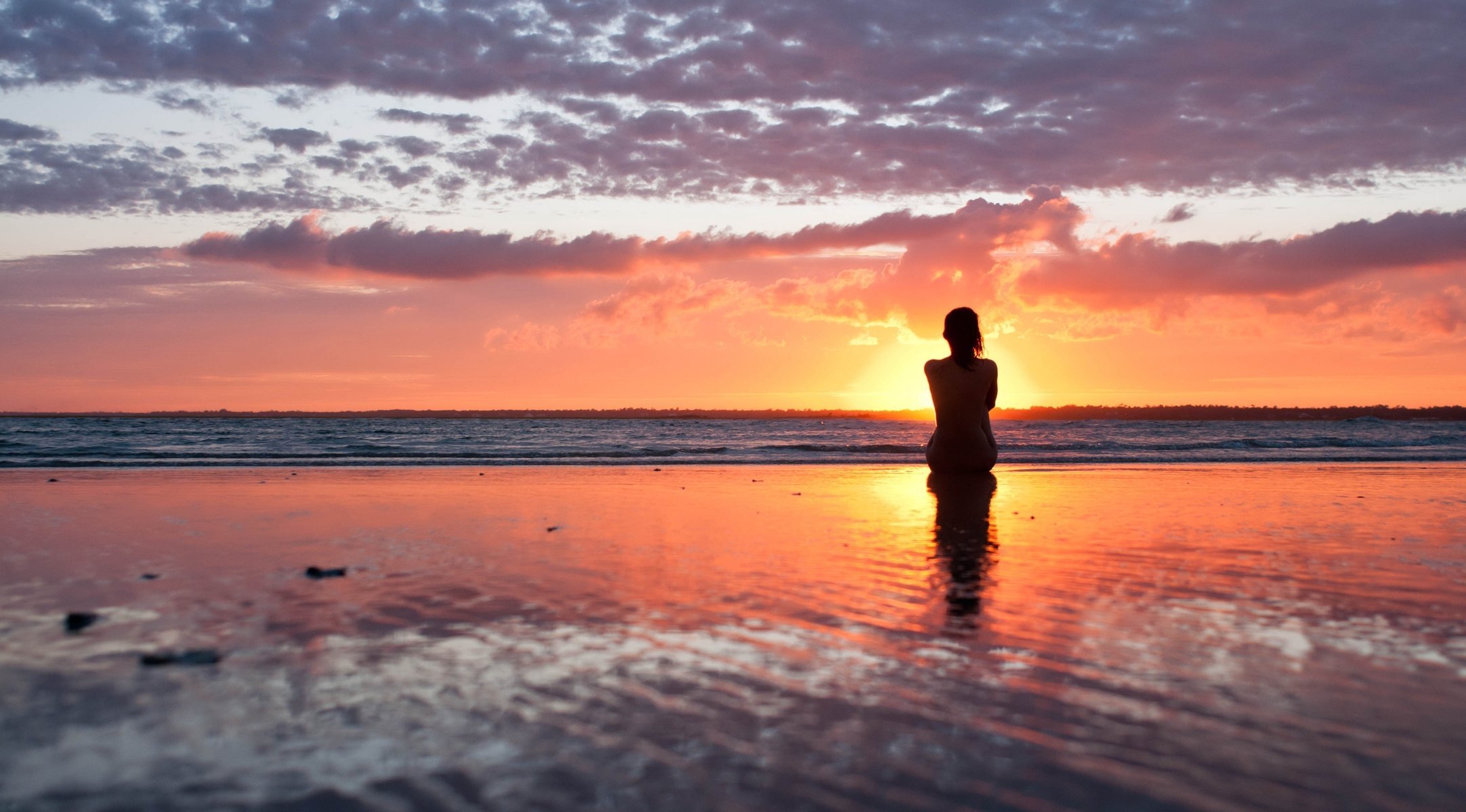 Silueta de una chica en los rayos del atardecer en un kayakSilueta de una chica en los rayos del atardecer en un kayak