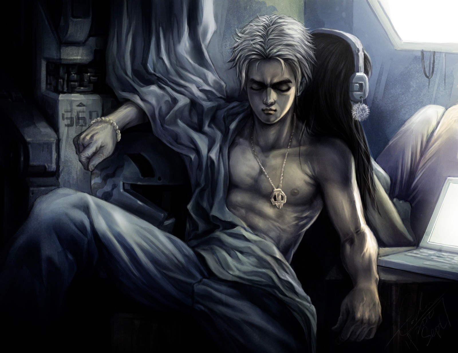 Figura de anime de un chico y una chica sentados en un banco frente a un cielo estrelladoFigura de anime de un chico y una chica sentados en un banco frente a un cielo estrellado