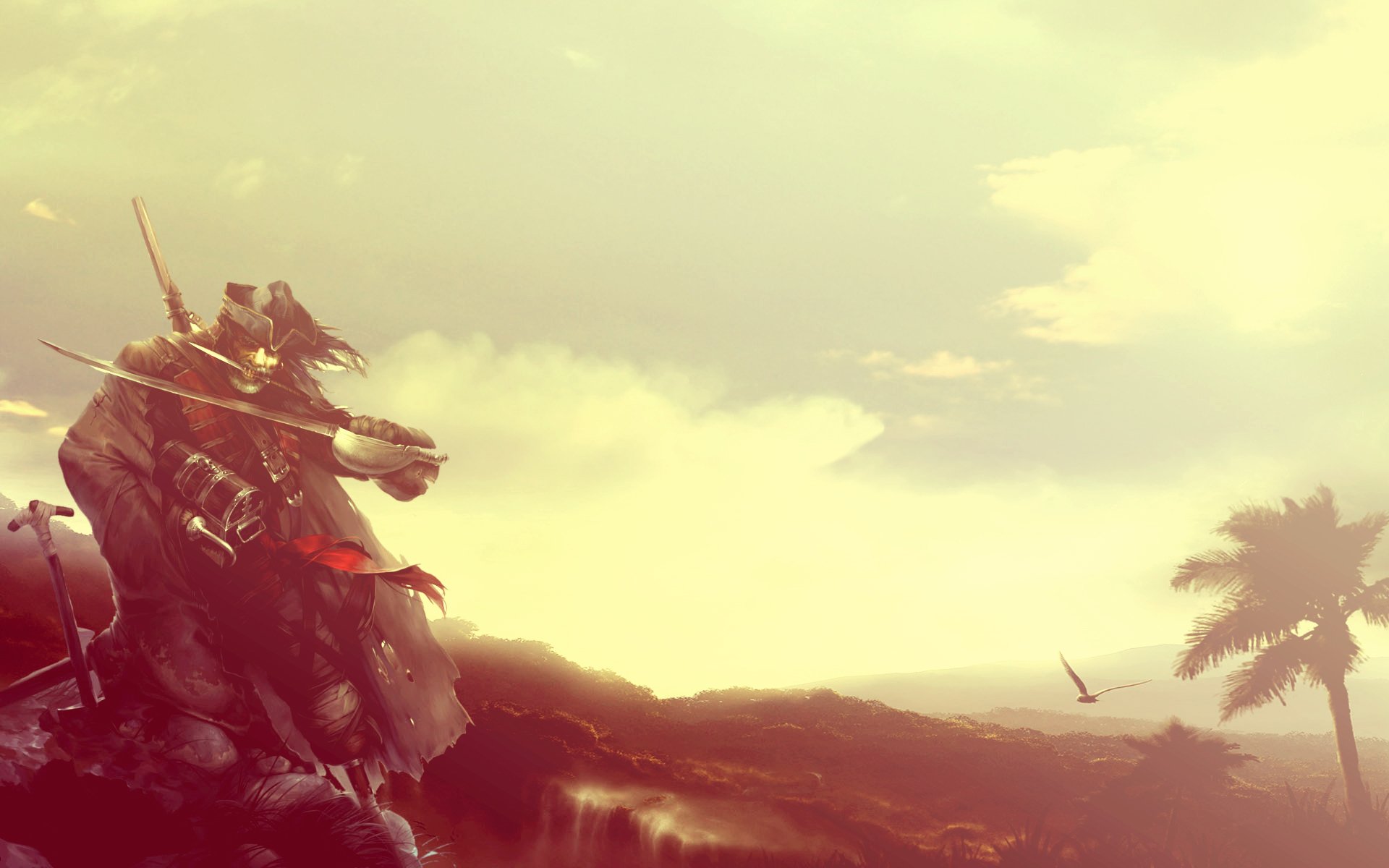 Imagen de una puesta de sol en el mar con un cofre y una palmeraImagen de una puesta de sol en el mar con un cofre y una palmera