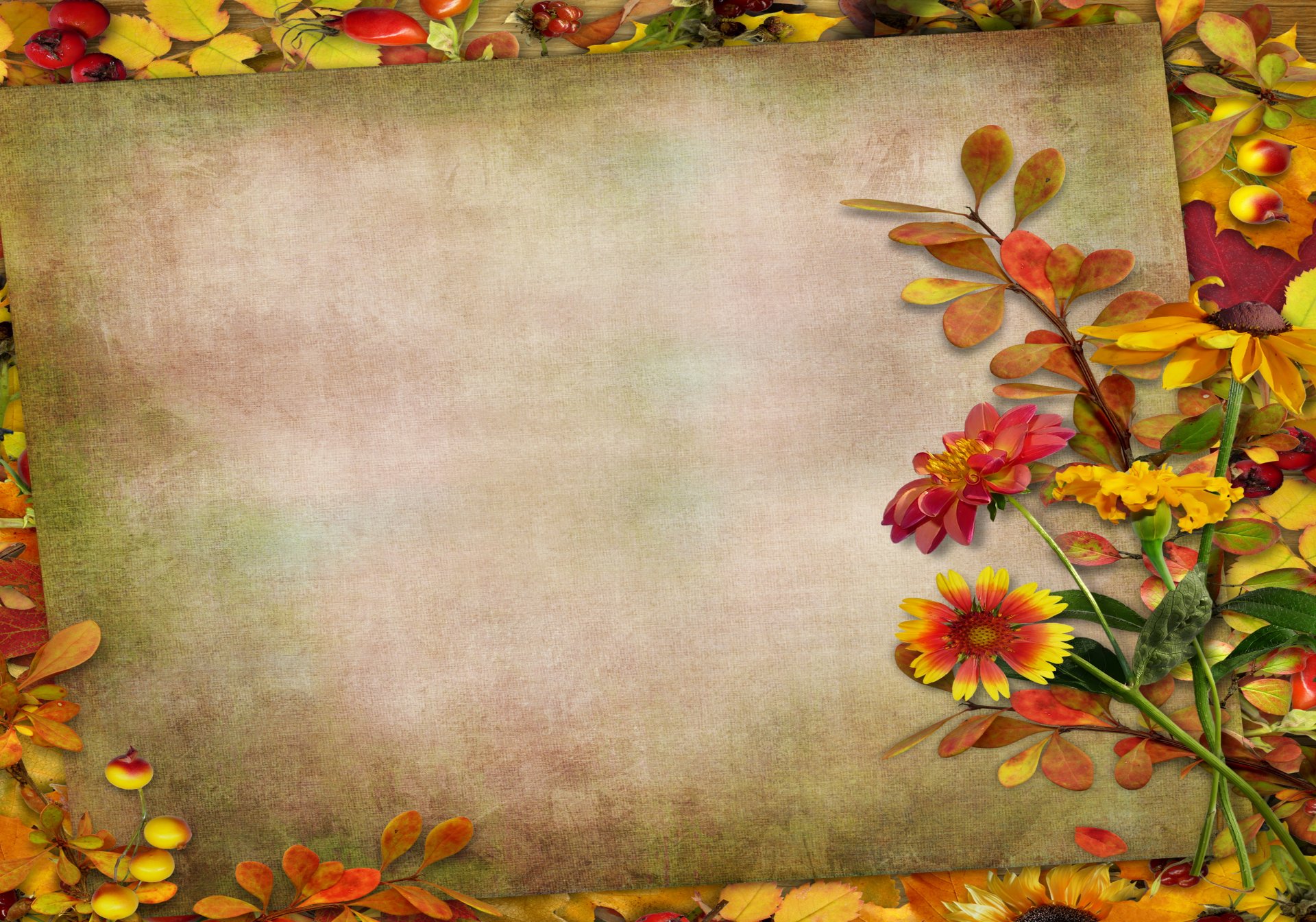 Rama macro con hojas y frutos de otoño