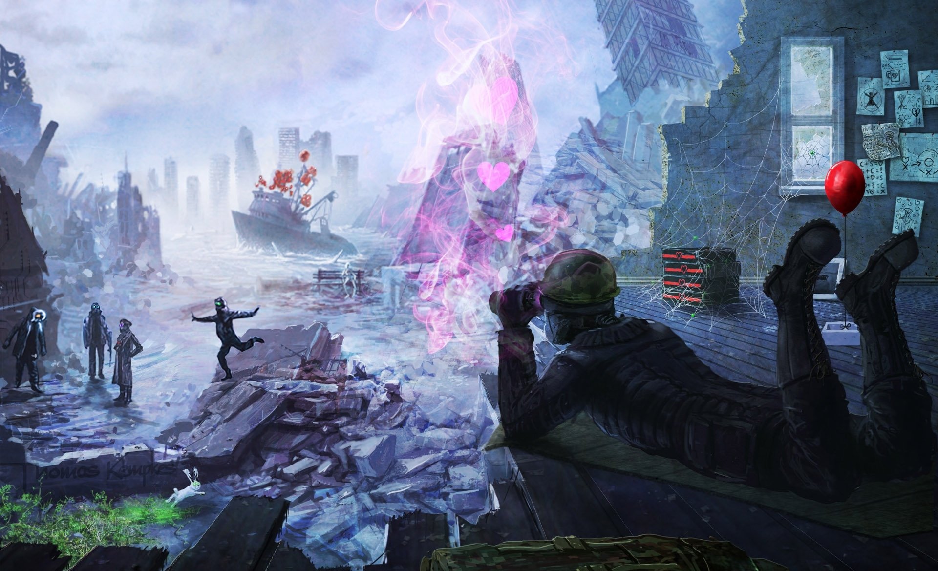 Un soldado en una emboscada observa a los caminantesUn soldado en una emboscada observa a los caminantes