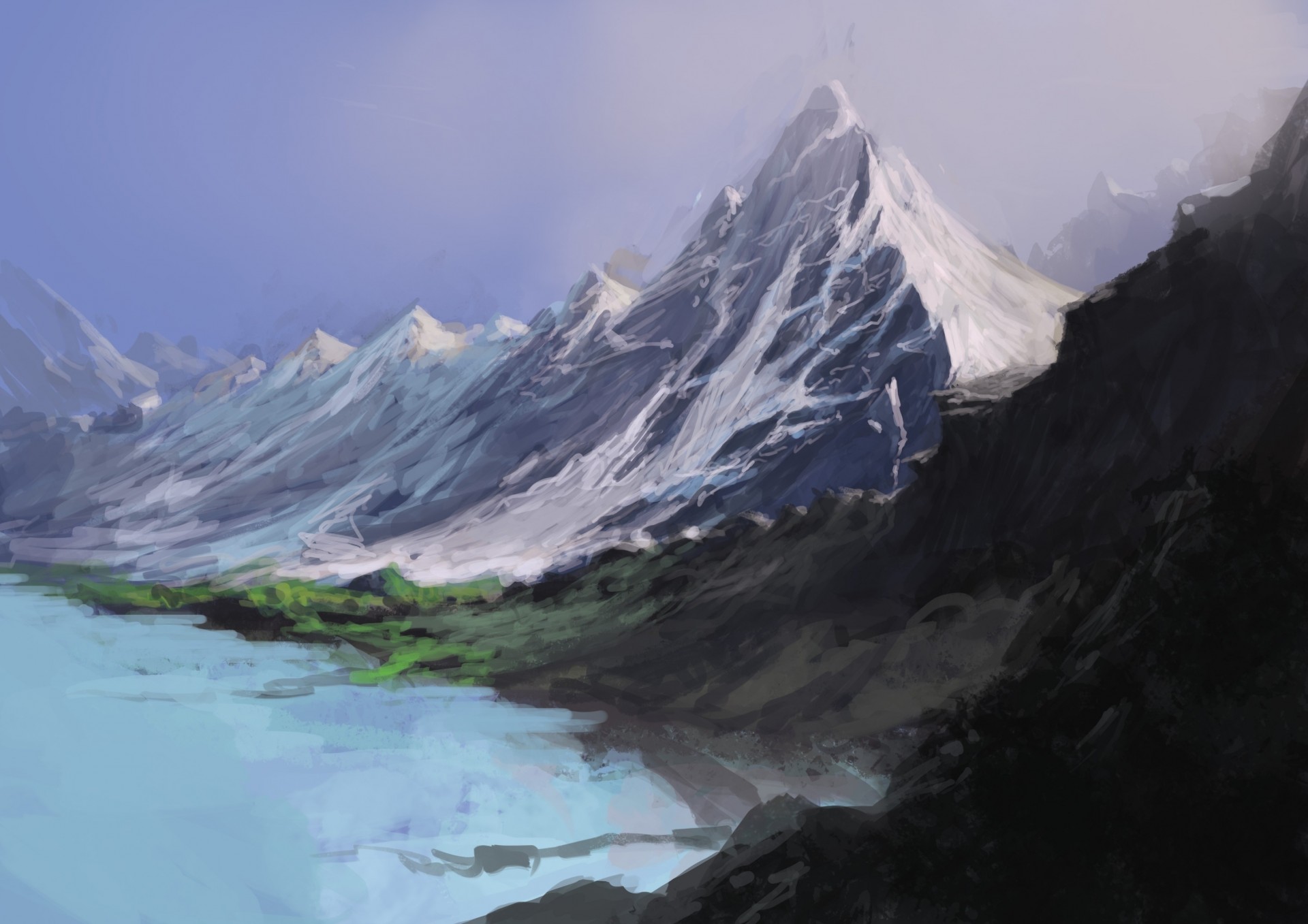 Caballos en el abrevadero, más allá de la cordillera del cielo al atardecerCaballos en el abrevadero, más allá de la cordillera del cielo al atardecer