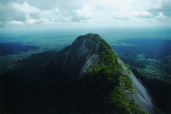 Un claro de dientes de león se encuentra con los rayos del sol desde detrás de los densos pinosUn claro de dientes de León se encuentra con los rayos del sol desde detrás de los densos pinos