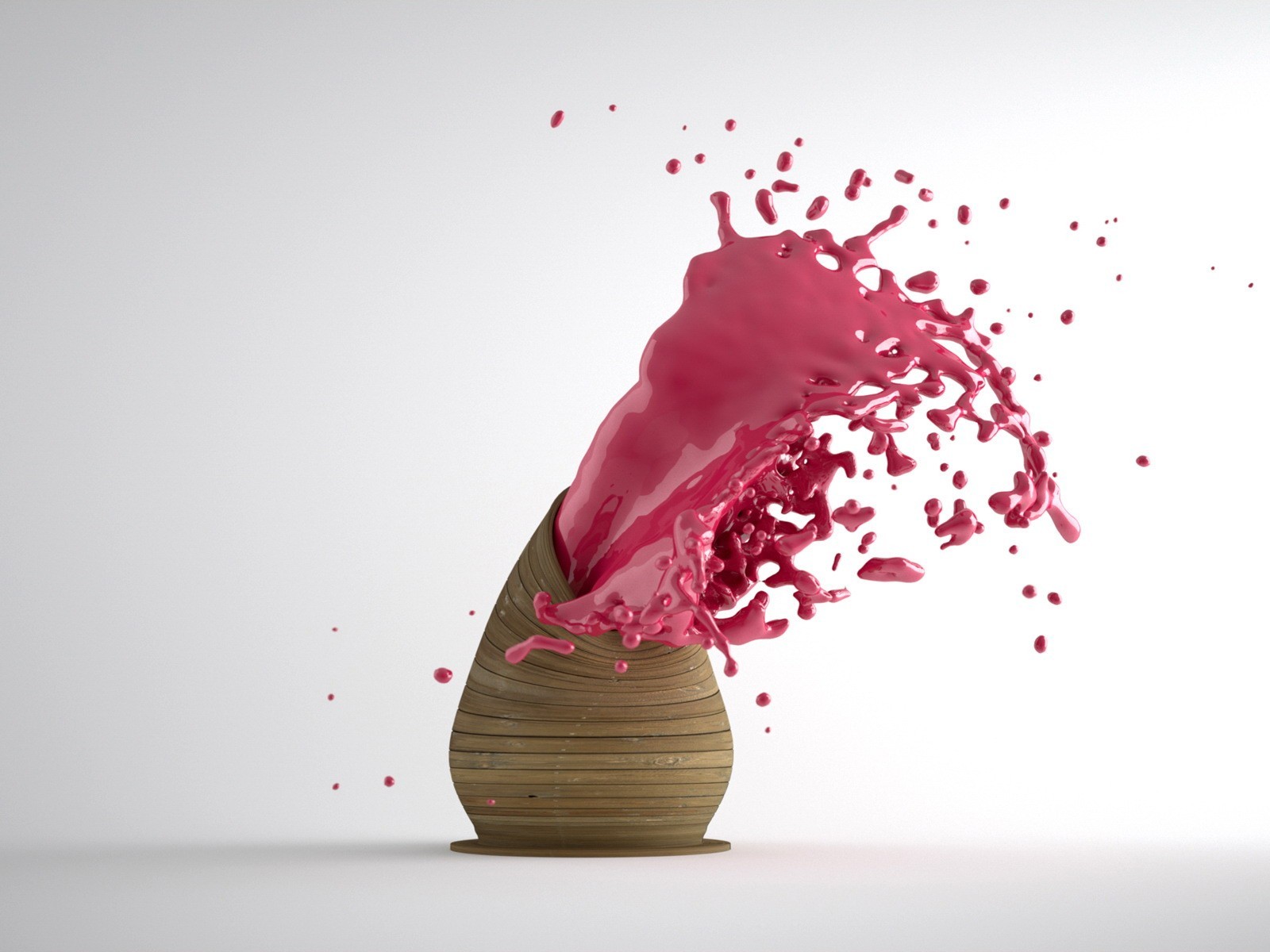 Un toque de pintura rosa de un jarrón sobre un fondo blancoUn toque de pintura rosa de un jarrón sobre un fondo blanco