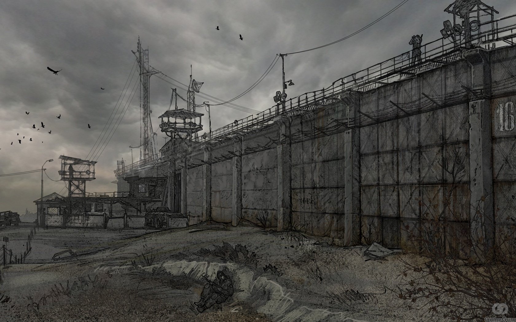 Valla gris de la central eléctrica. aves voladorasValla gris de la central eléctrica. Aves voladoras