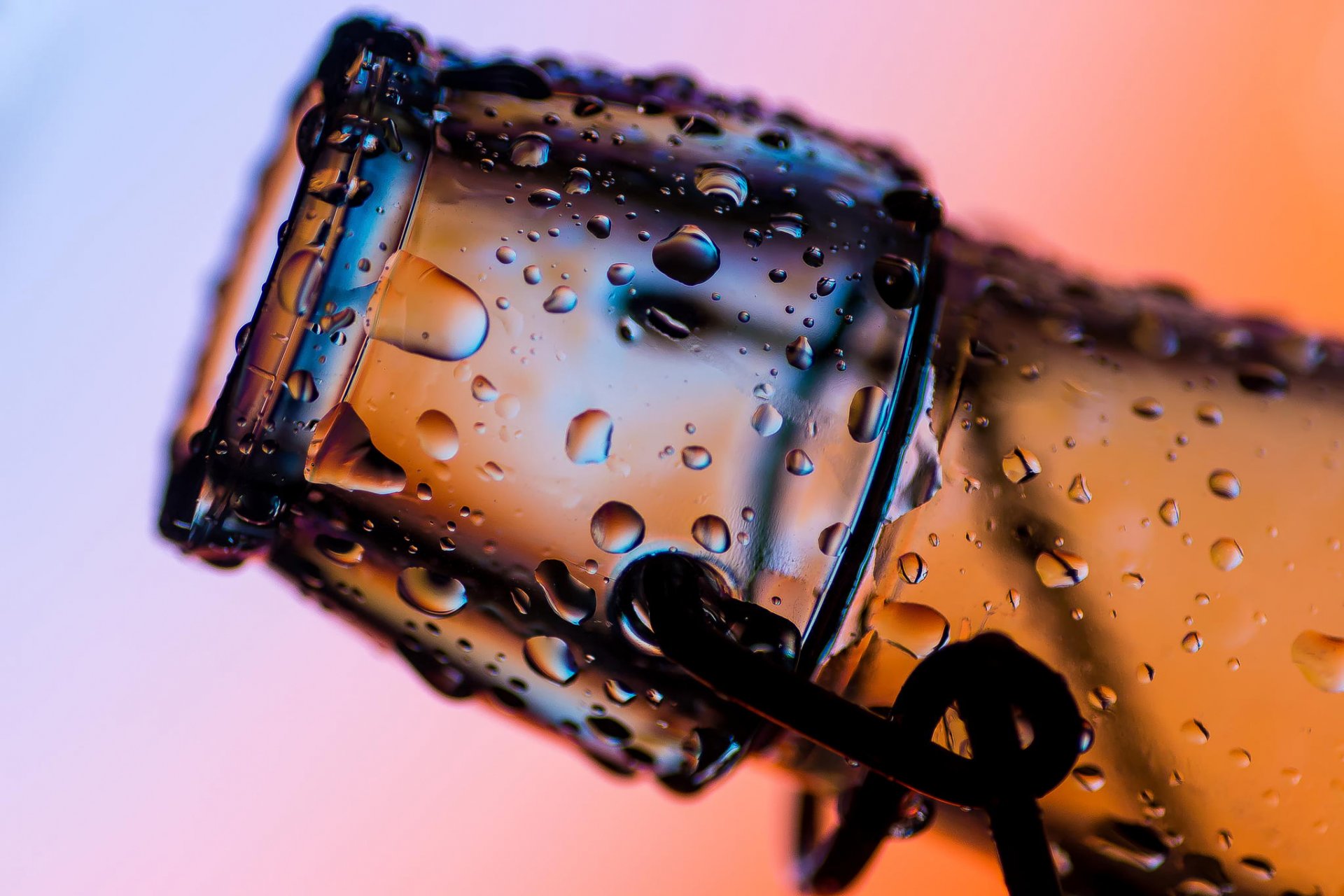 Las gotas de Joule sobre el cristal en el fondo del paisaje