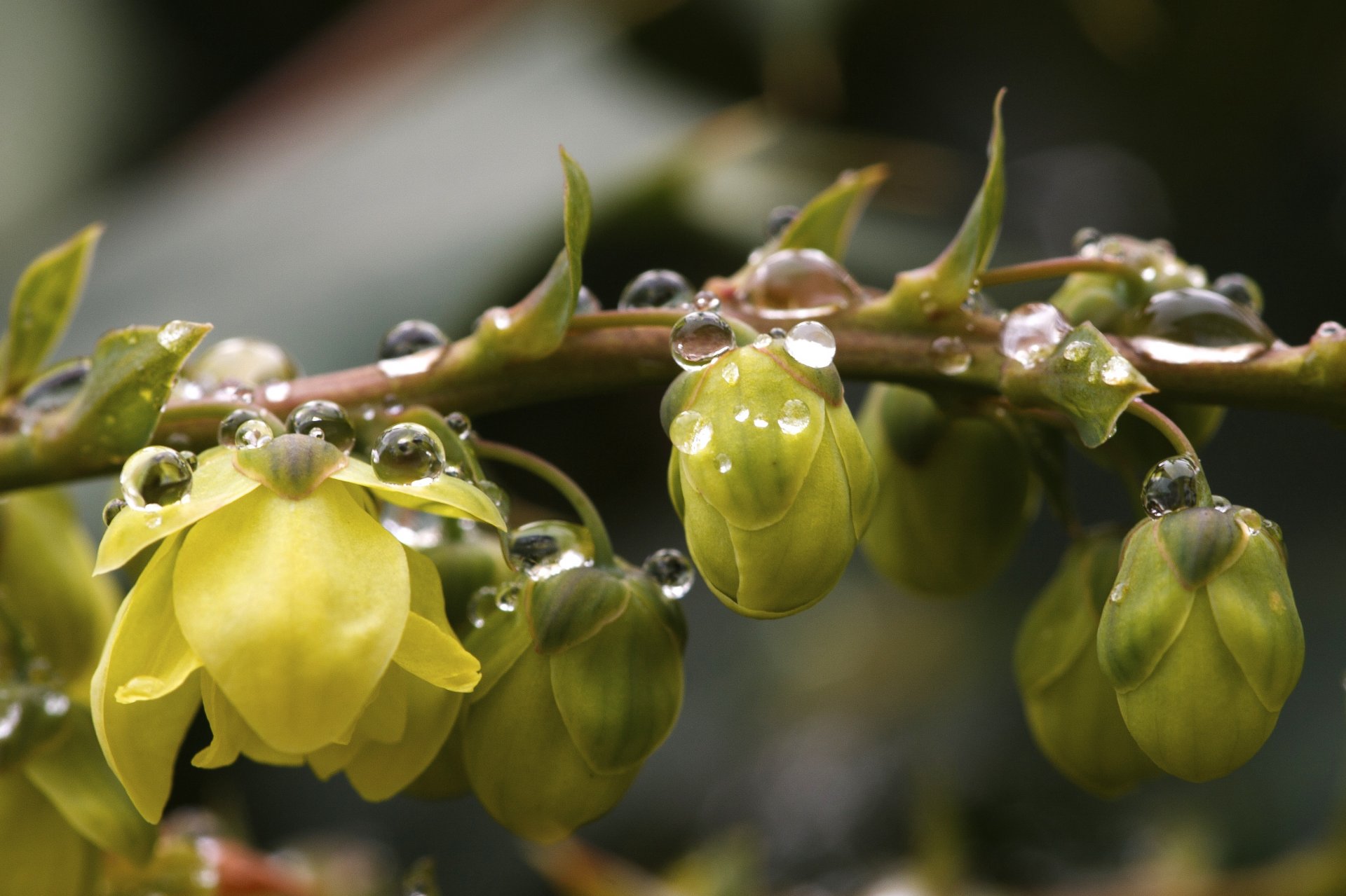 Gotas de rocío de la mañana que caen sobre las delicadas flores
