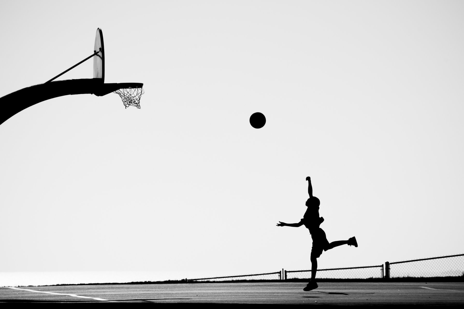 Silueta de una chica lanzando una pelota en un anilloSilueta de una chica lanzando una pelota en un anillo