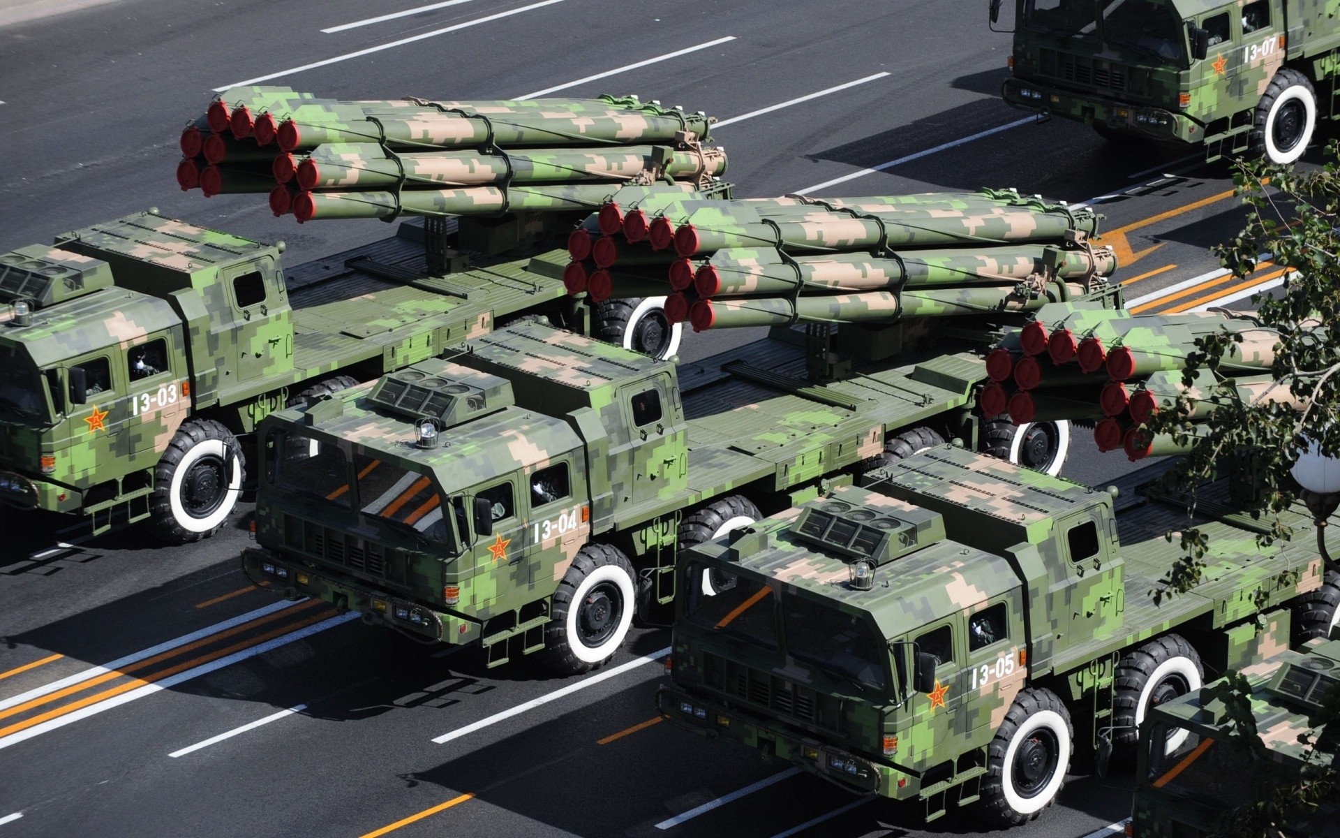 Instalación de fuego autopropulsado en el desfile de la Victoria