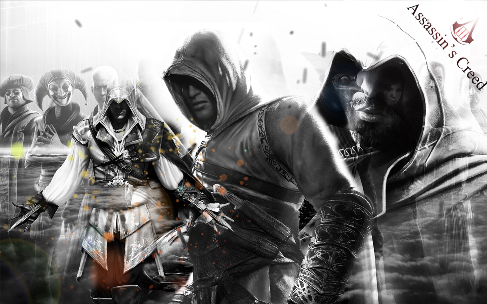 Asesino encapuchado y enmascarado con armas en la manoAsesino encapuchado y enmascarado con armas en la mano