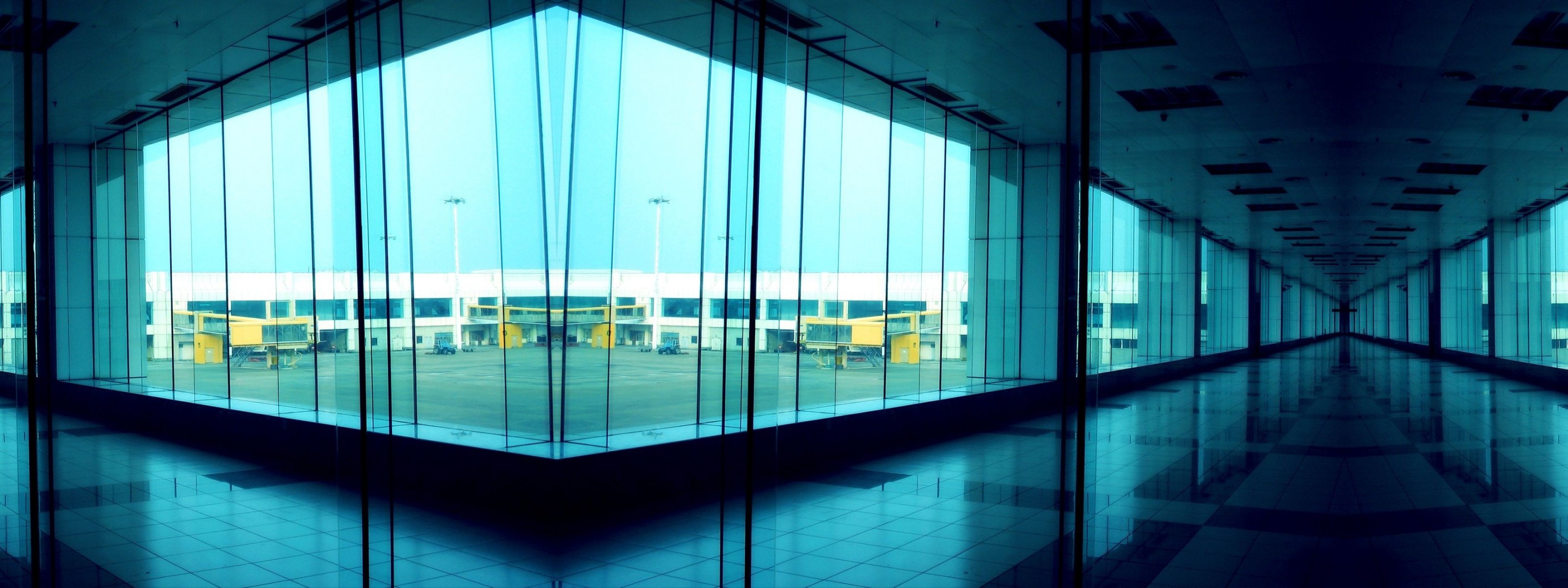 Fotografía panorámica del edificio con grandes ventanales desde el interiorFotografía panorámica del edificio con grandes ventanales desde el interior