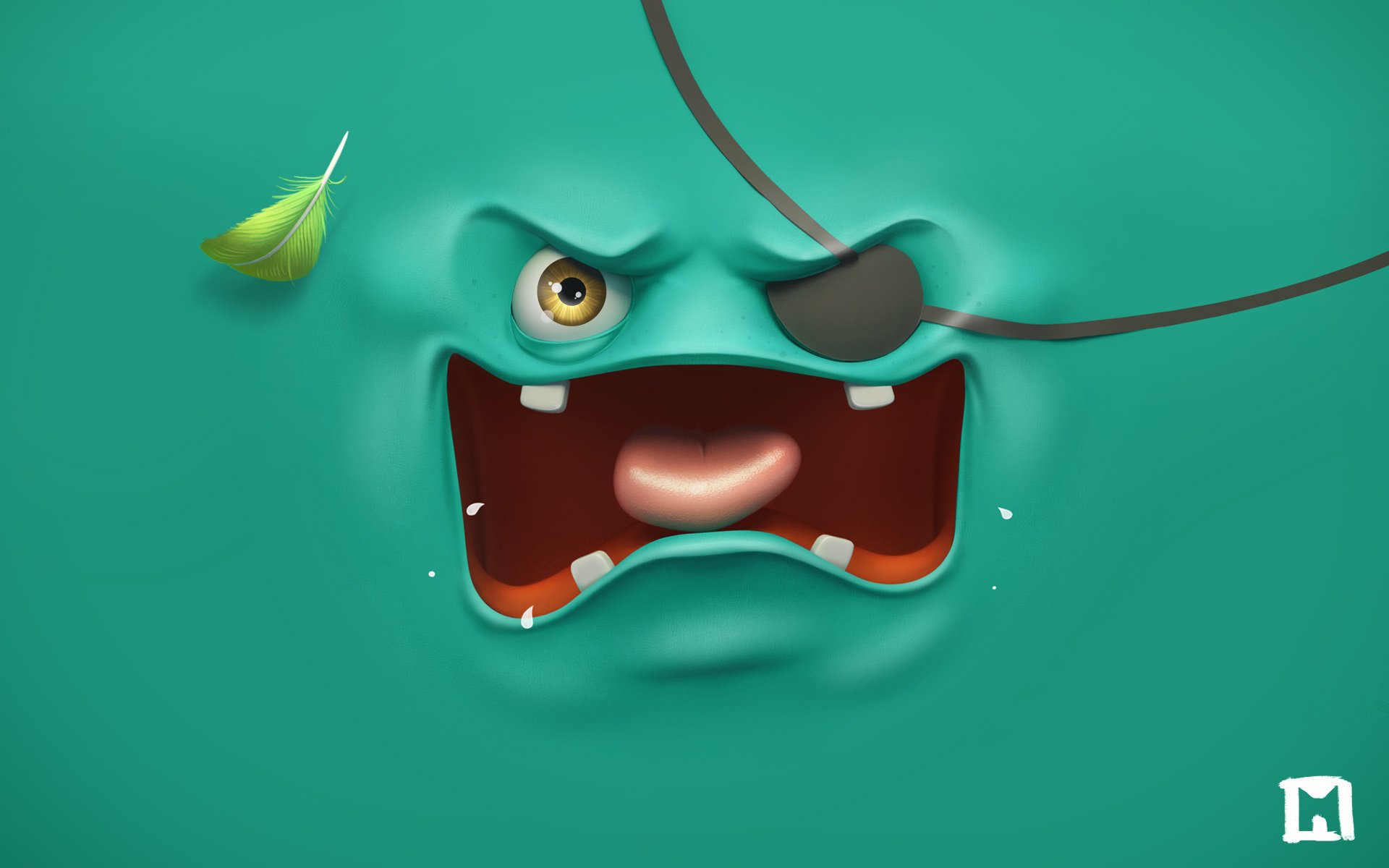 Una mueca con un parche en el ojo sobre un fondo verdeUna mueca con un parche en el ojo sobre un fondo verde