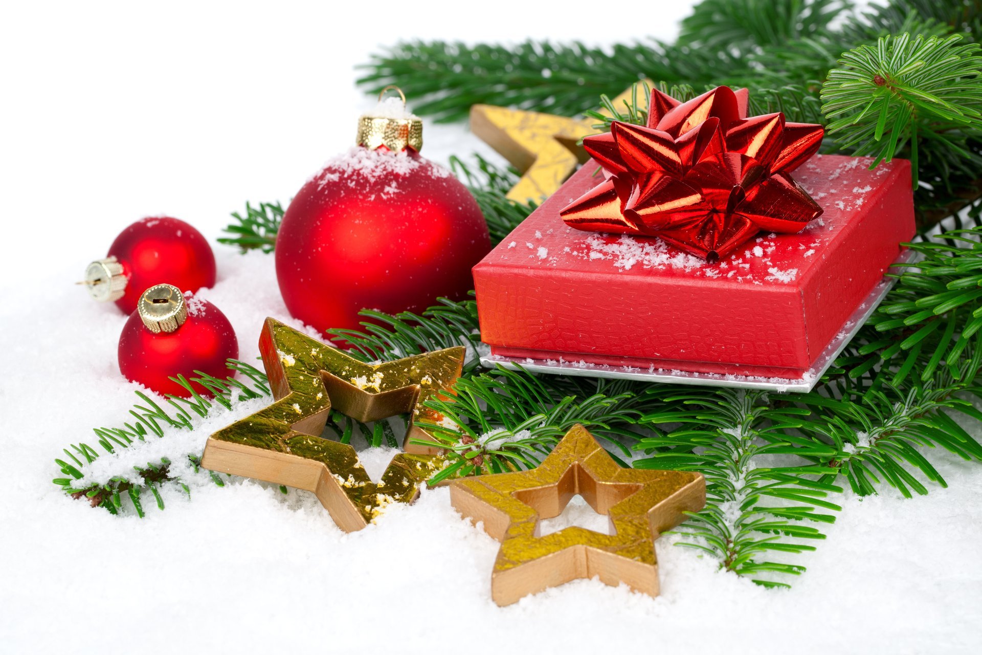 Regalo de Navidad en Caja con arco y bolas de Navidad