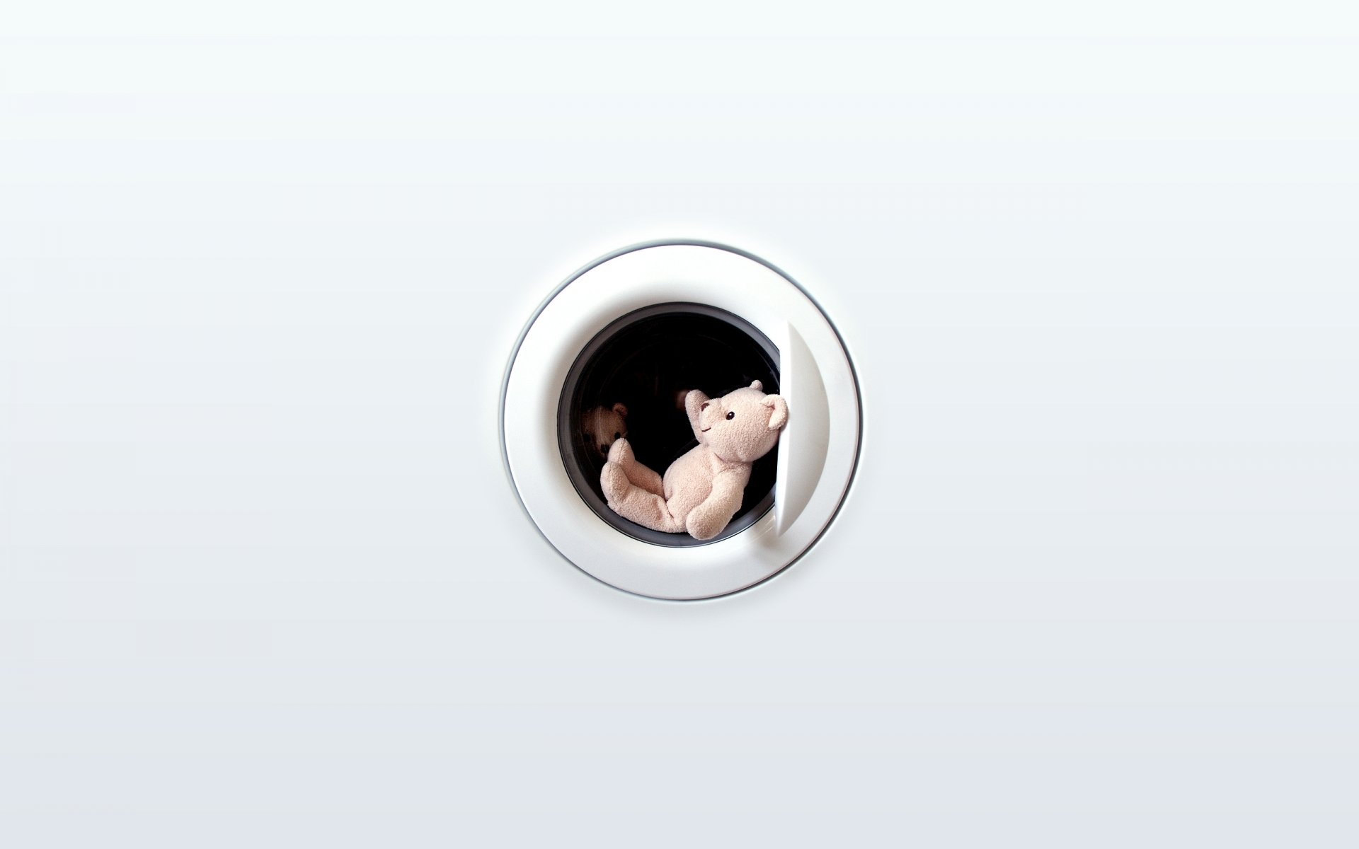 Oso de peluche se acuesta con la escotilla de la Lavadora