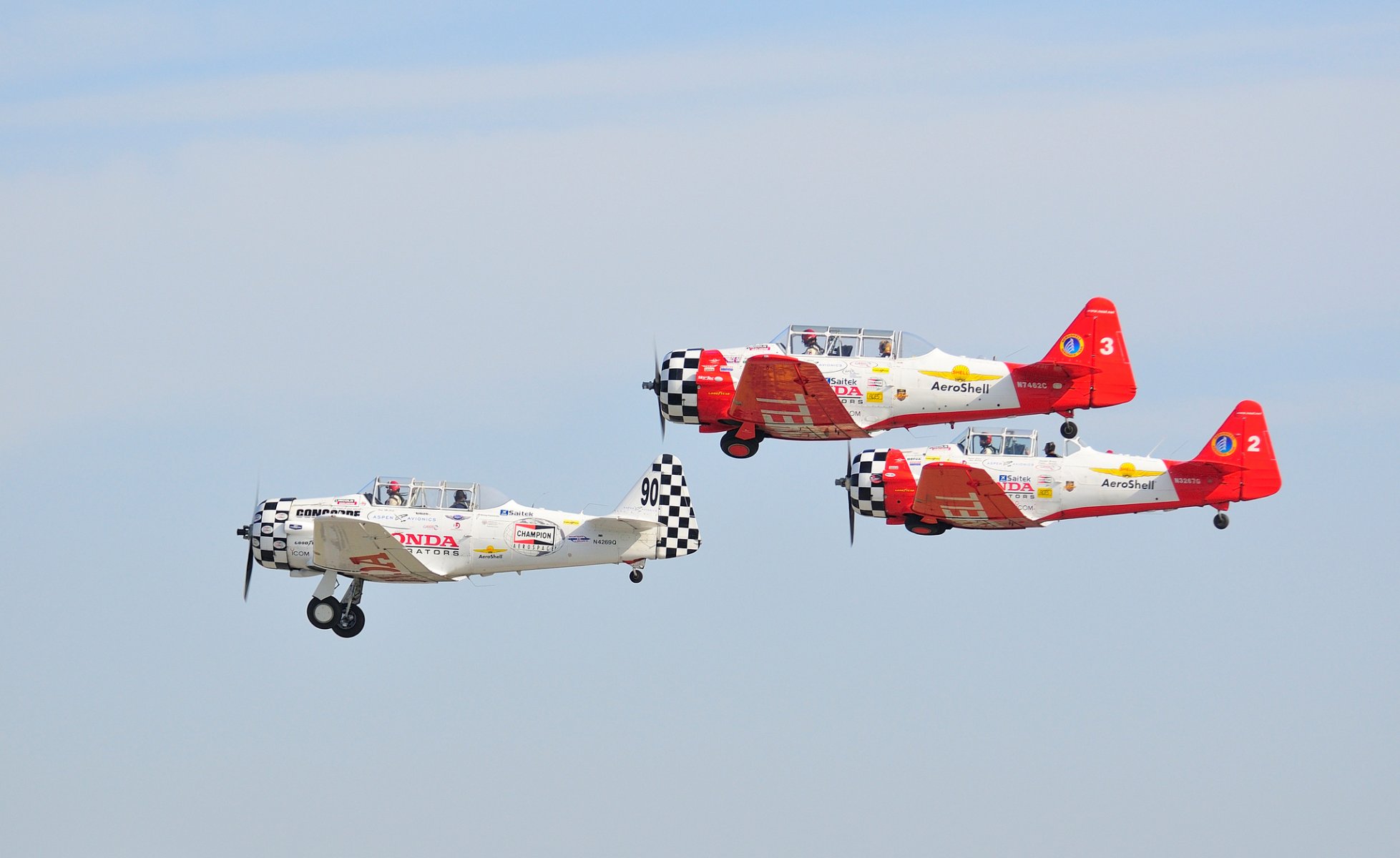 Un escuadrón de aviones amarillos vuela en el cielo azul