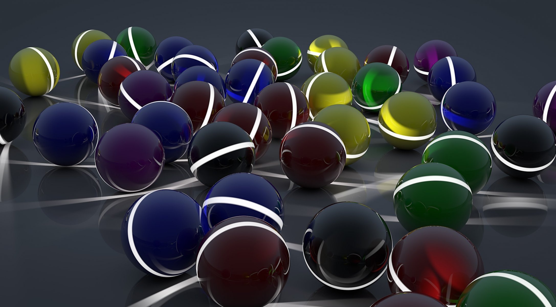 Esferas de diferentes tamaños y colores sobre fondo negro