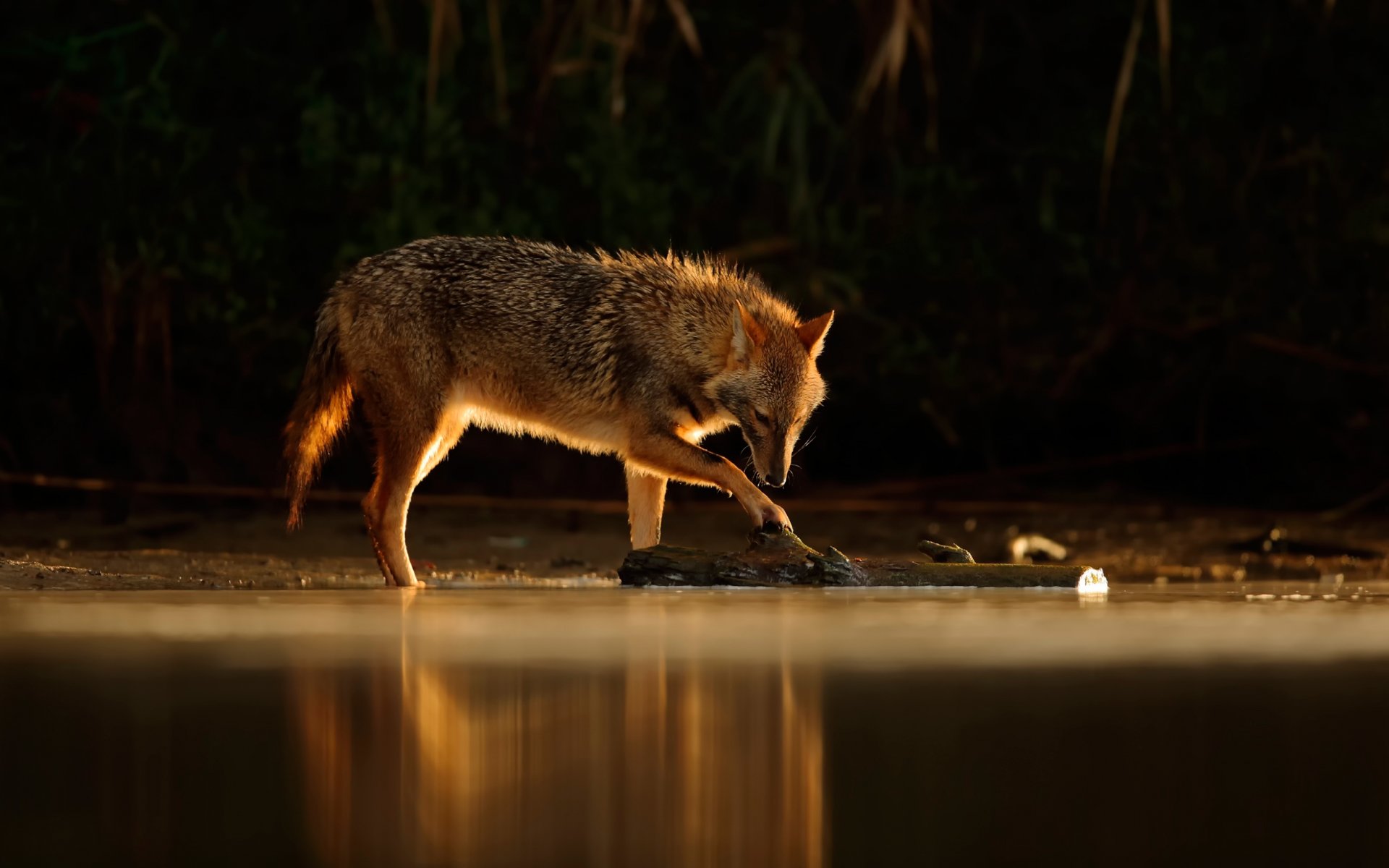 Un automóvil de pasajeros de color negro se encuentra en el fondo de las montañas, reflejándose en la superficie del agua