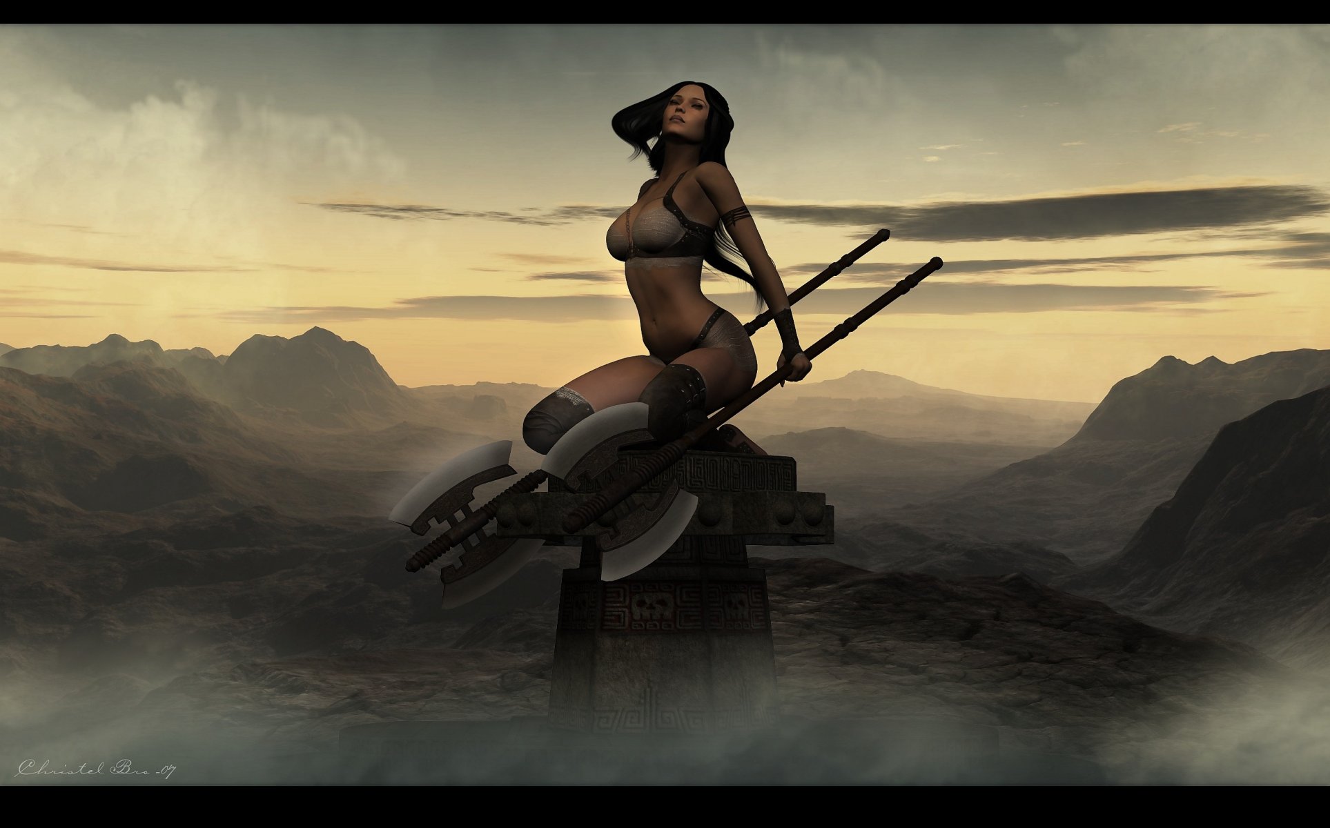Chica guerrera en invierno en el estilo de fantasía deChica guerrera en invierno en el estilo de fantasía de