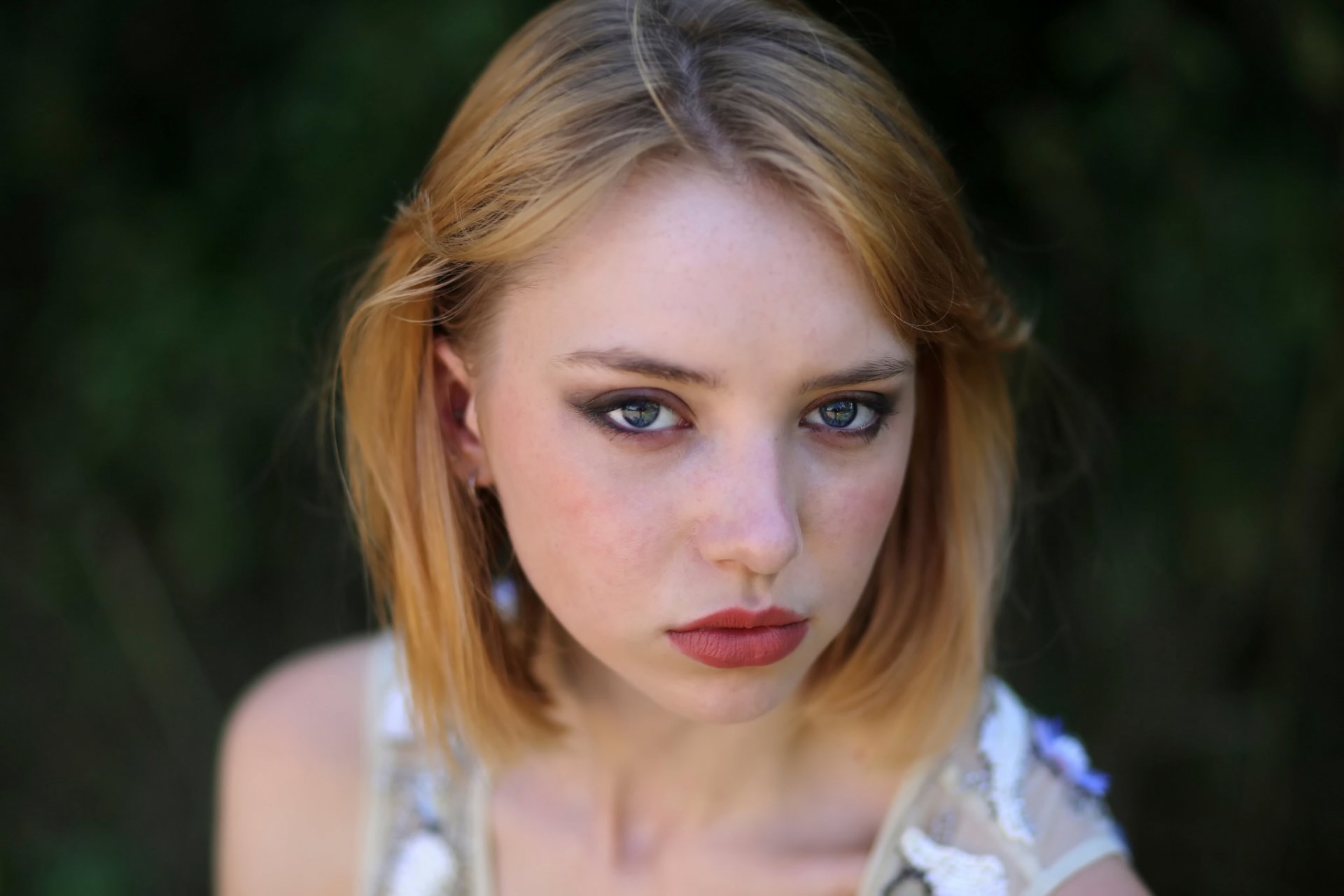 Chica con el pelo rubio de la cara de cerca pelirroja virgenChica con el pelo rubio de la cara de cerca pelirroja Virgen