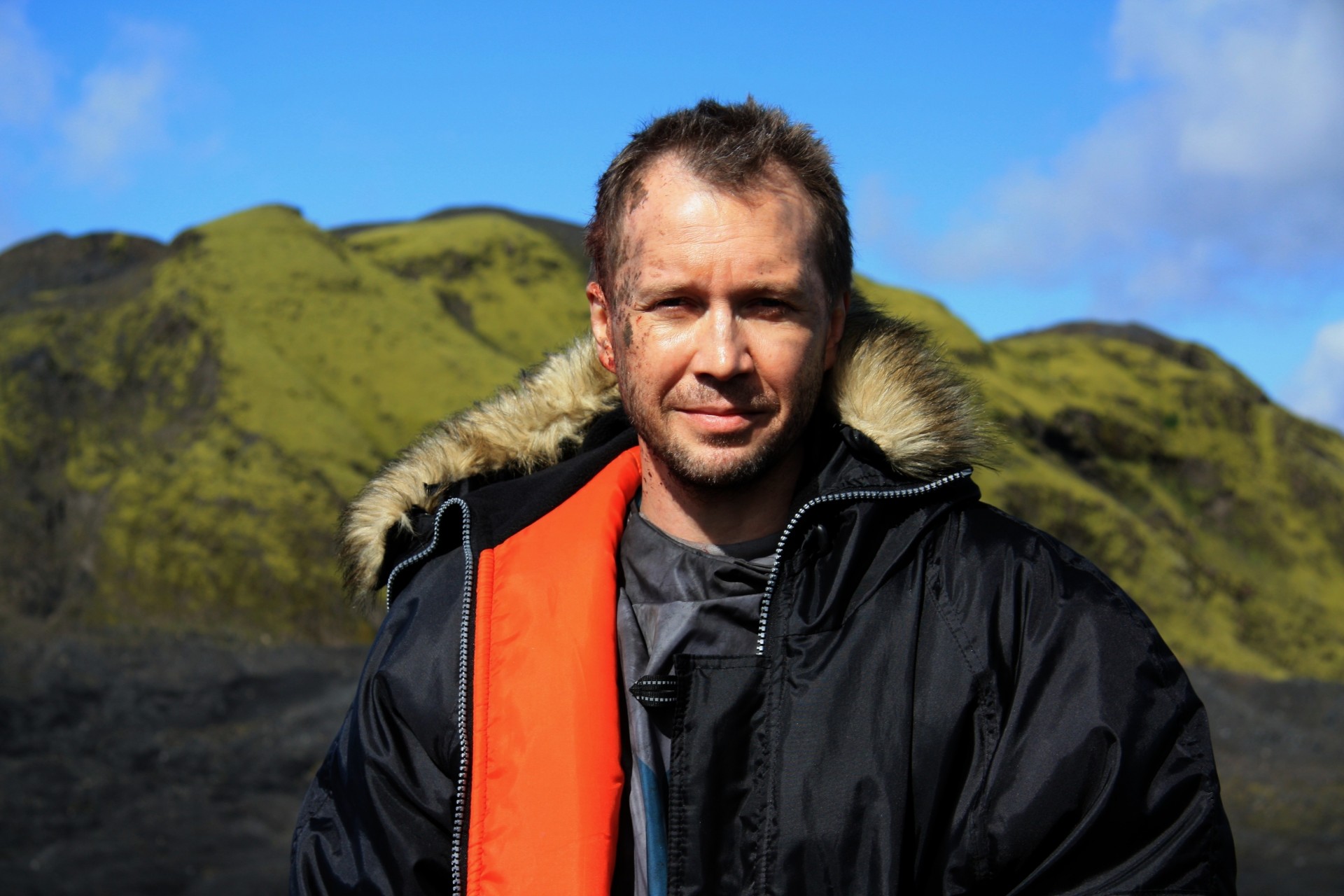 El actor Yevgeny Mironov con una cara sucia sonríe a la audiencia