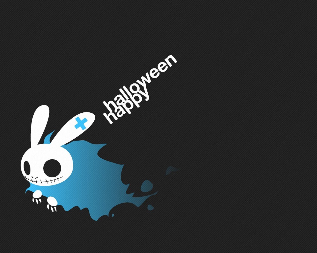 Postal de Halloween sobre un fondo negro con una liebre