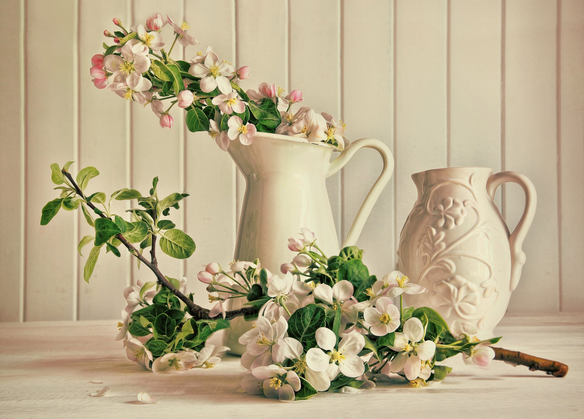 Flores de color rosa blanco en una jarra