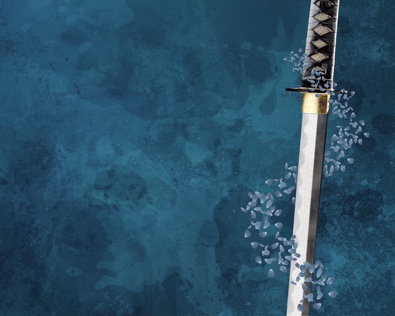 Espada con pétalos enrollados sobre fondo azul