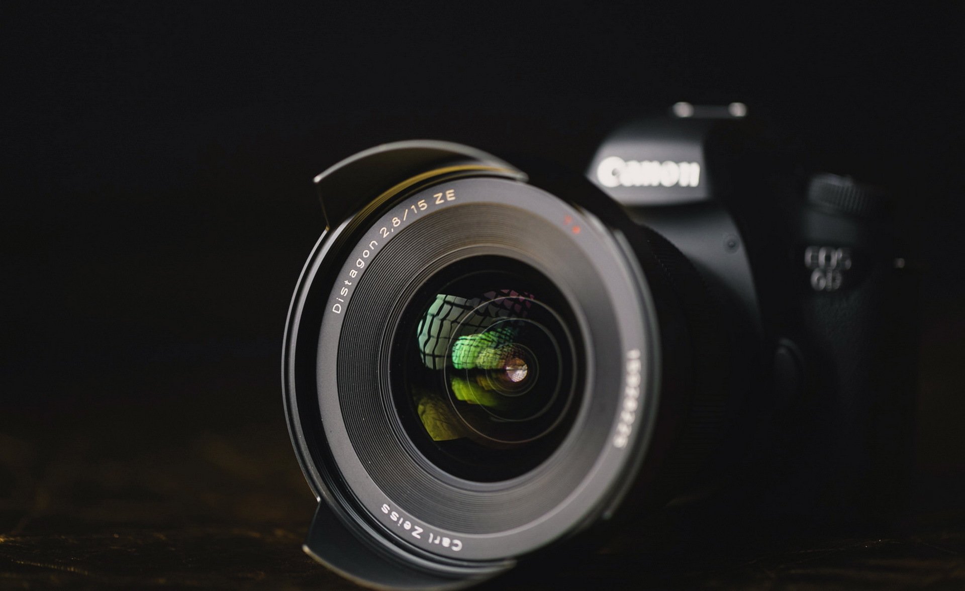 Una cámara con una lente abierta se encuentra en un fondo pushymtomUna cámara con una lente abierta se encuentra en un fondo pushymtom