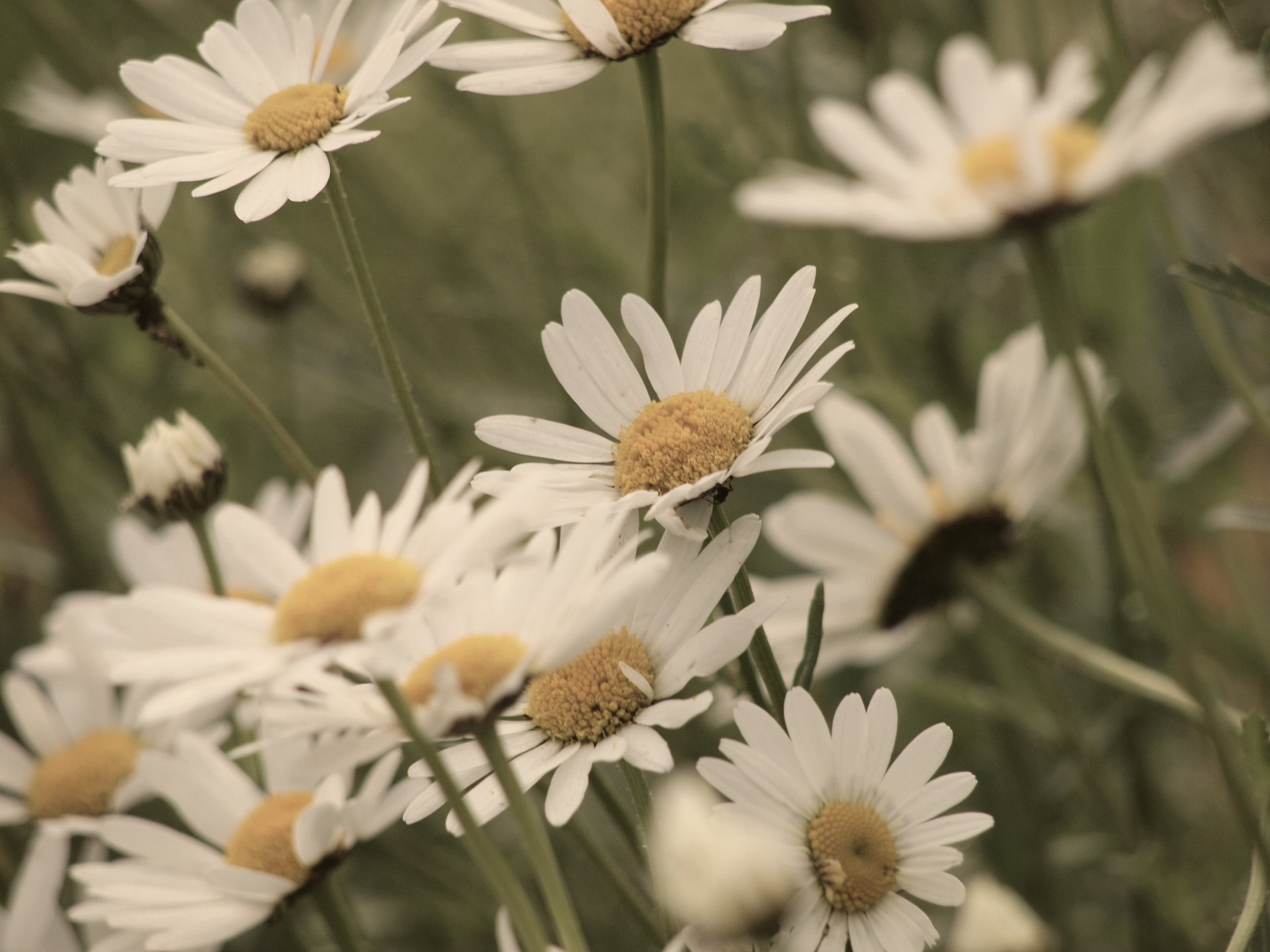 Margaritas amarillas y blancas sobre un fondo verdeMargaritas amarillas y blancas sobre un fondo verde