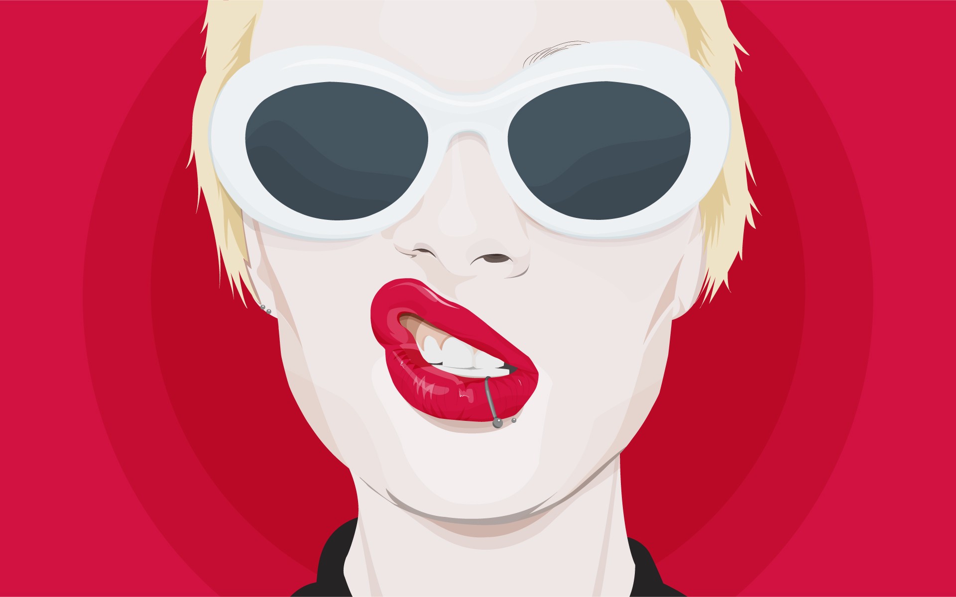 Morena con gafas y lencería blanca se encuentra en la playaMorena con gafas y lencería blanca se encuentra en la playa