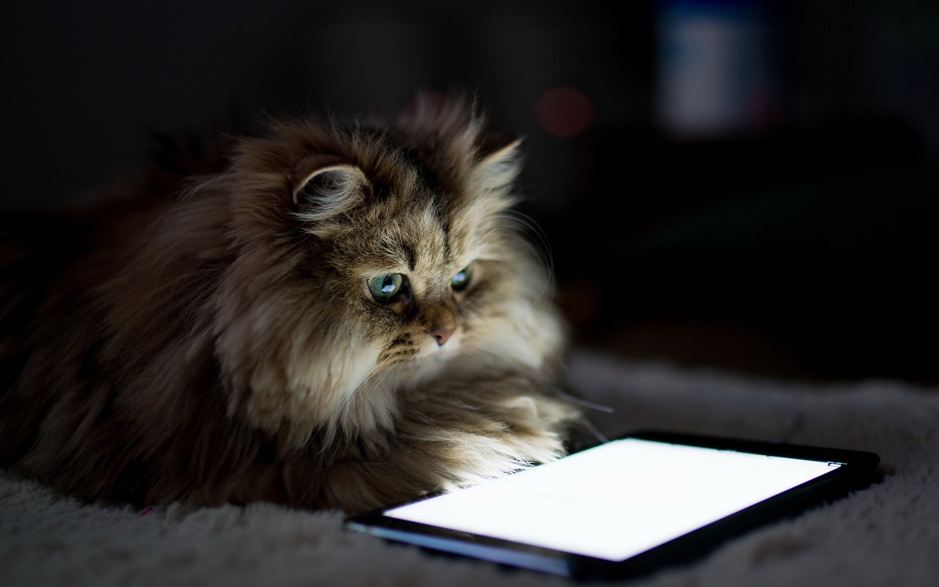 El gato con ojos verdes se sienta y Mira hacia arriba