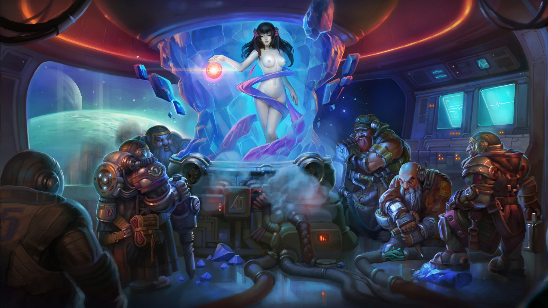 Planeta. Vehículo espacial. Blancanieves en cristal