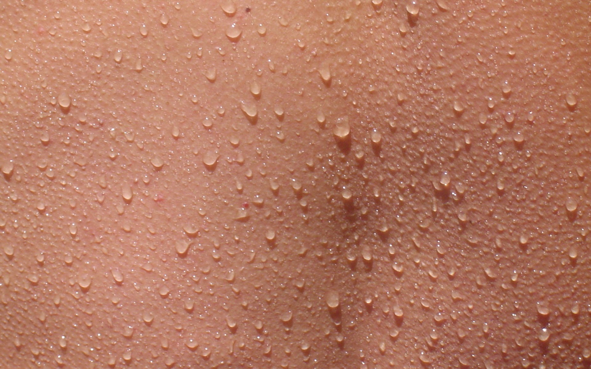 Mariquitas entre gotas de agua sobre un fondo rojo