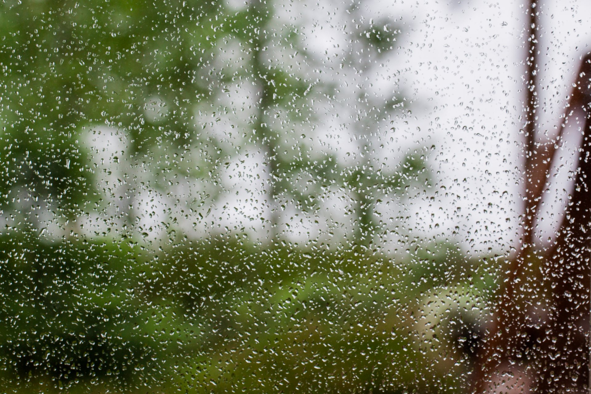 Ventana en gotas de lluvia. fuera de la ventana se puede ver una bandada de pájaros volandoVentana en gotas de lluvia. Fuera de la ventana se puede ver una bandada de pájaros volando