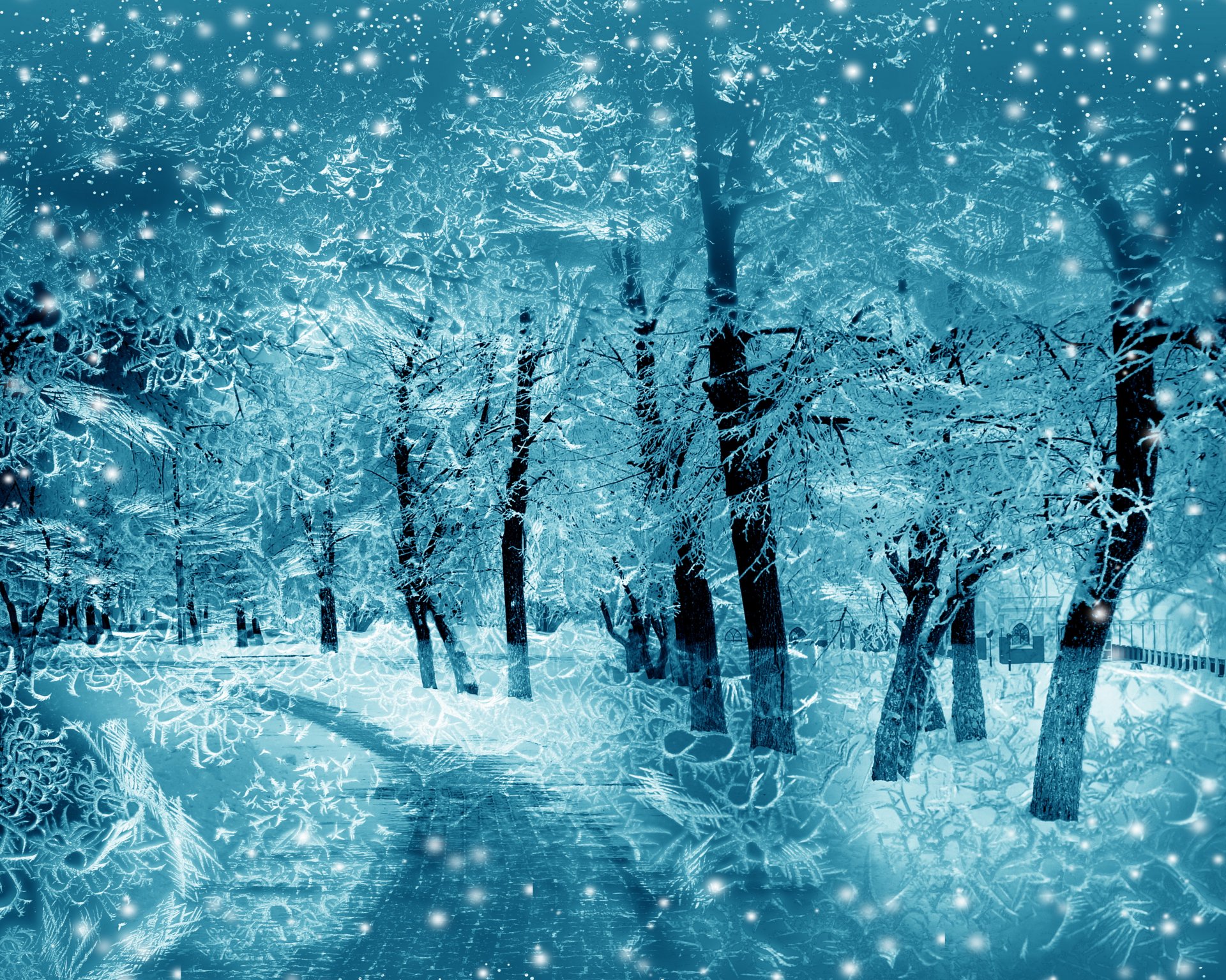 Paisaje de invierno con árboles cubiertos de nievePaisaje de invierno con árboles cubiertos de nieve
