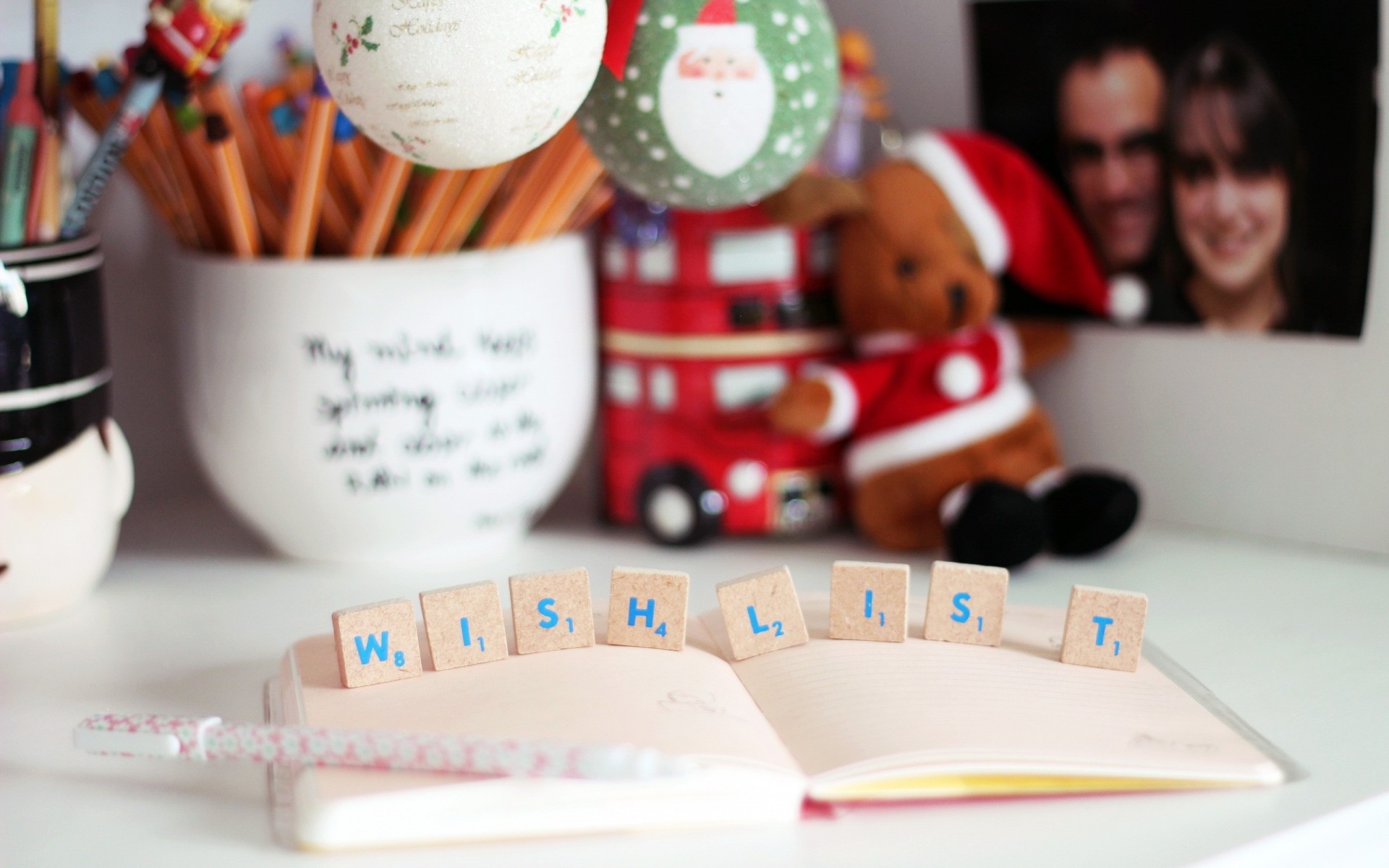 Escritorio con Bloc de notas y cubos de madera