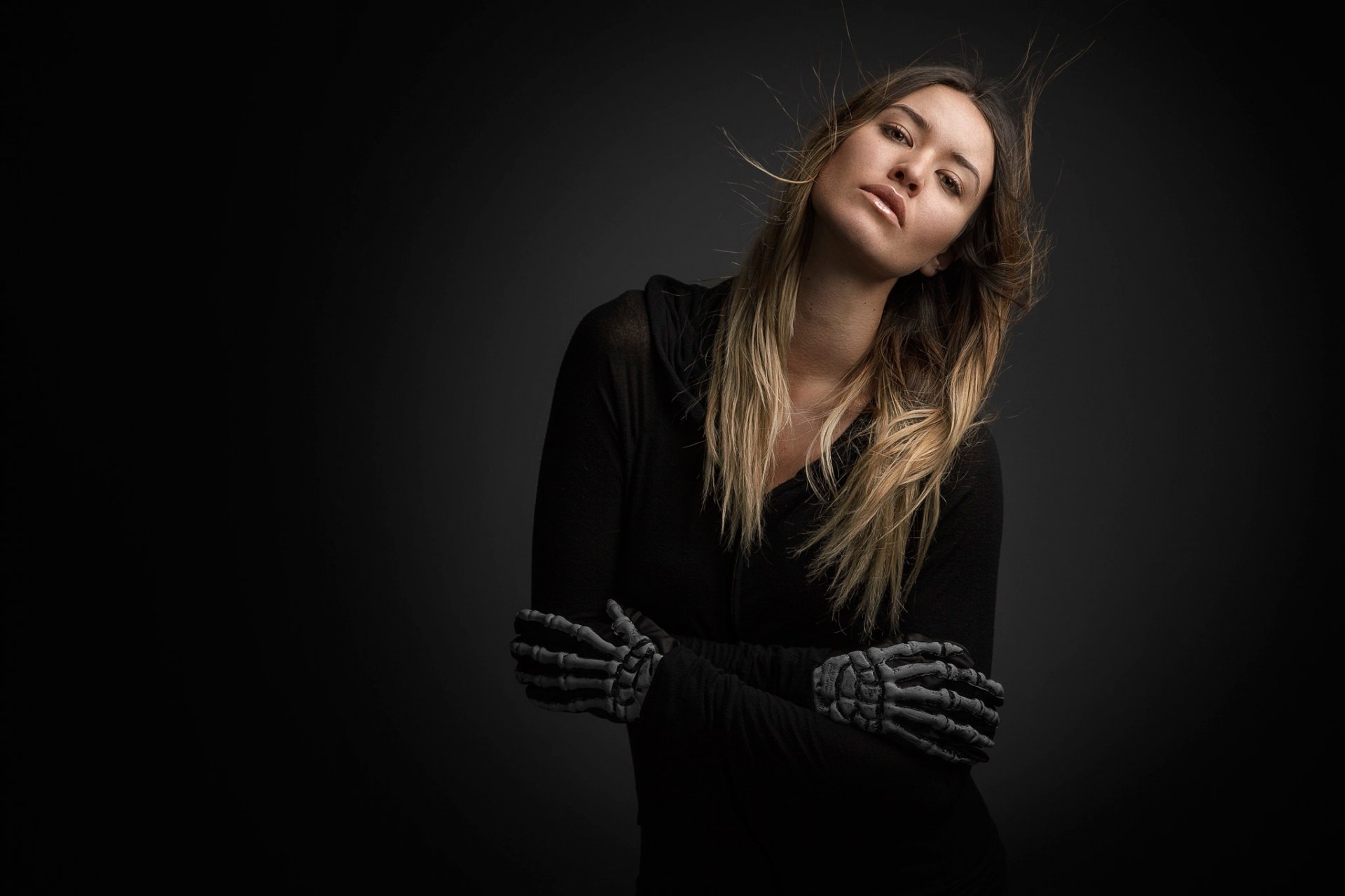 Una chica con un sombrero con orejeras sostiene un regaloUna chica con un sombrero con orejeras sostiene un regalo