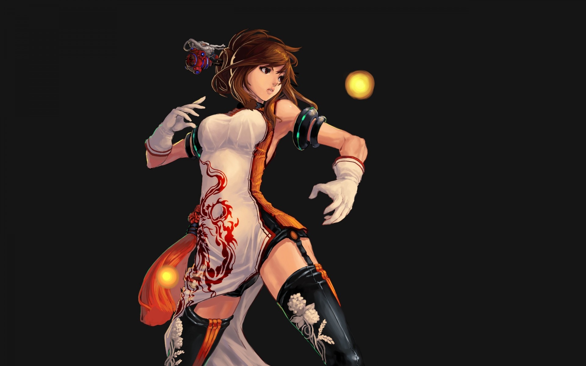 Morena en guantes oscuros en el fondo de una tormenta de fantasía