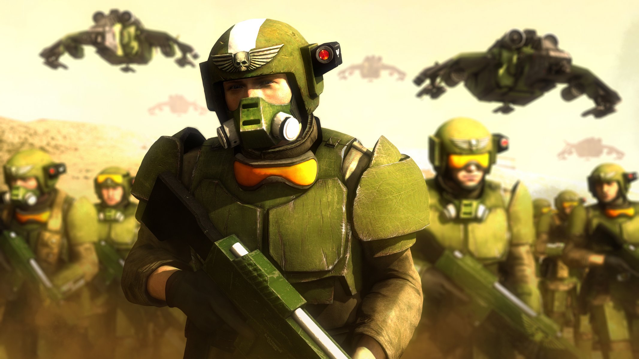 Soldados de la guardia Imperial caminan en el campo