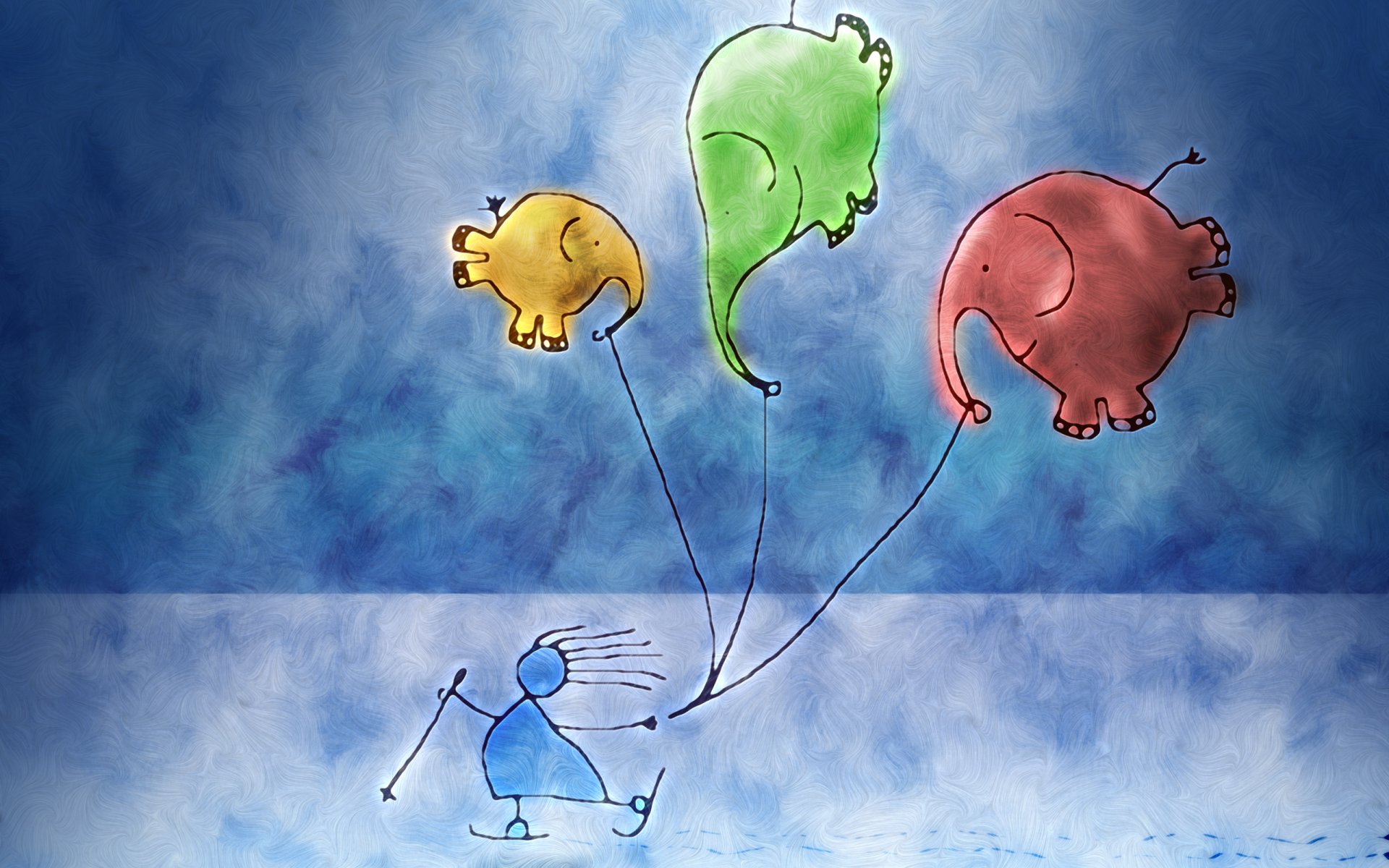Dibujado a mano chica creativa en esquís con elefantes acuáticos delirio de inviernoDibujado a mano chica creativa en esquís con elefantes acuáticos delirio de invierno