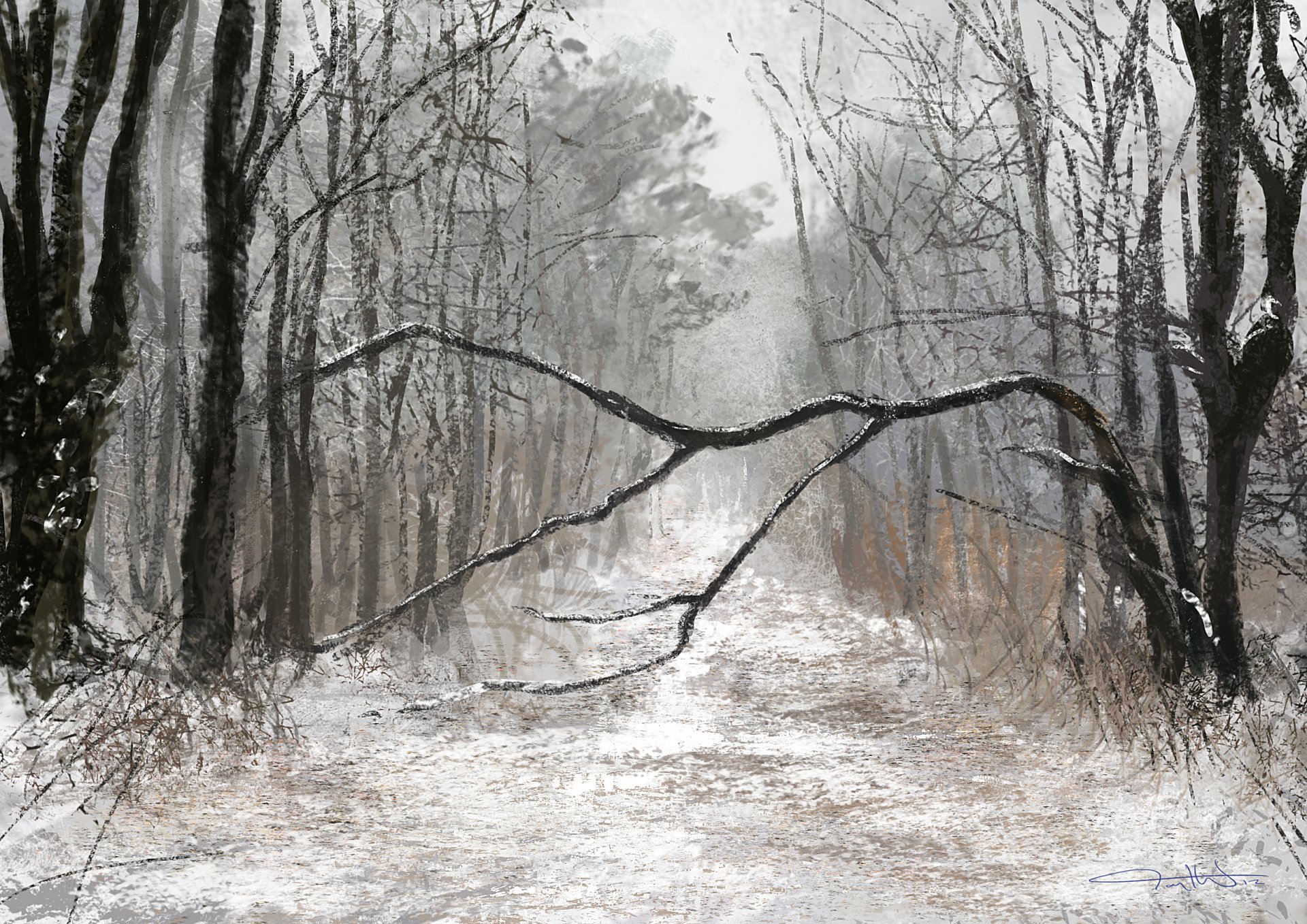 Reflejo del bosque en el agua. Hojas en la superficie del agua