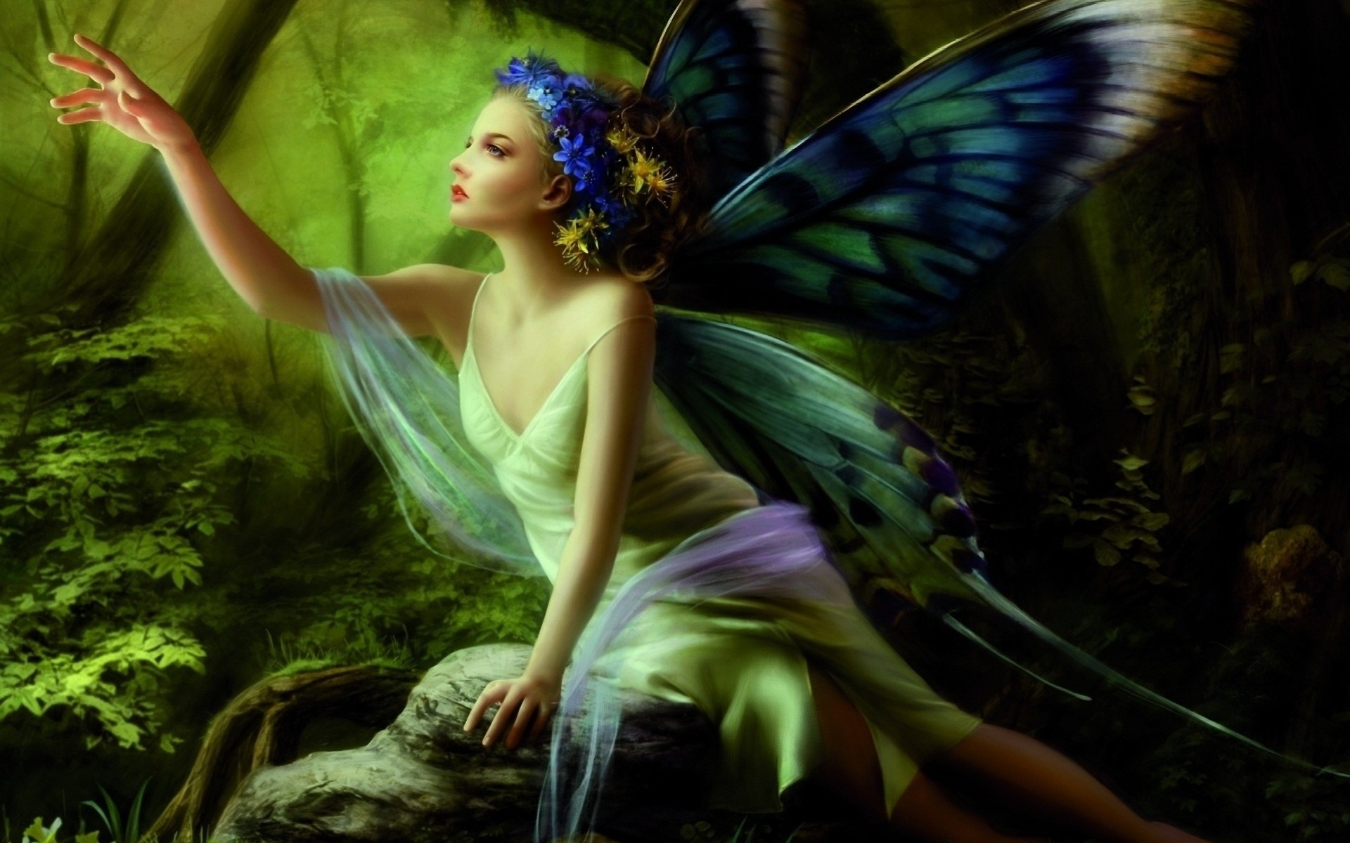 Imagen de pequeñas hadas brillantes volando hacia el cieloImagen de pequeñas hadas brillantes volando hacia el cielo