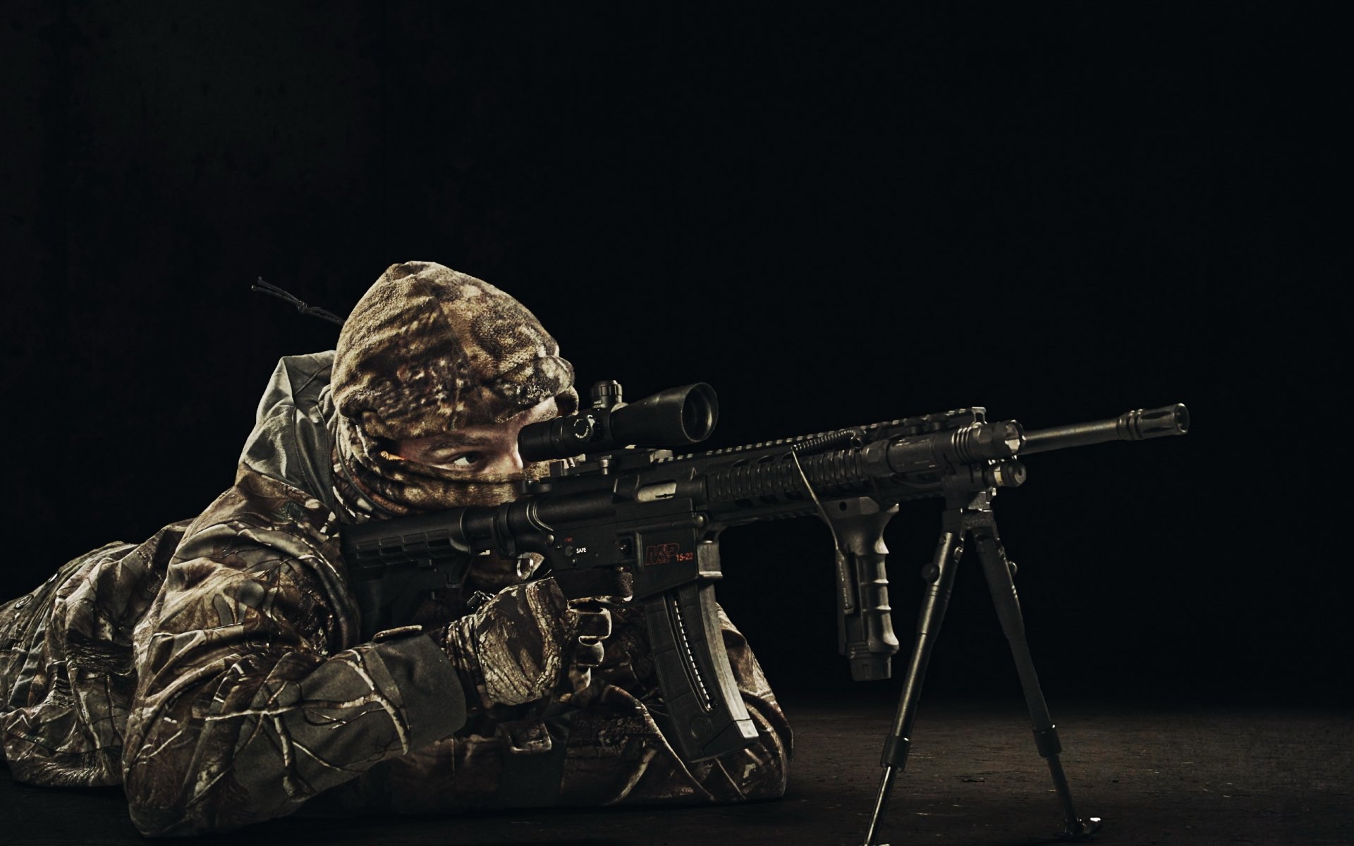 Francotirador se prepara para disparar en el puntoFrancotirador se prepara para disparar en el punto