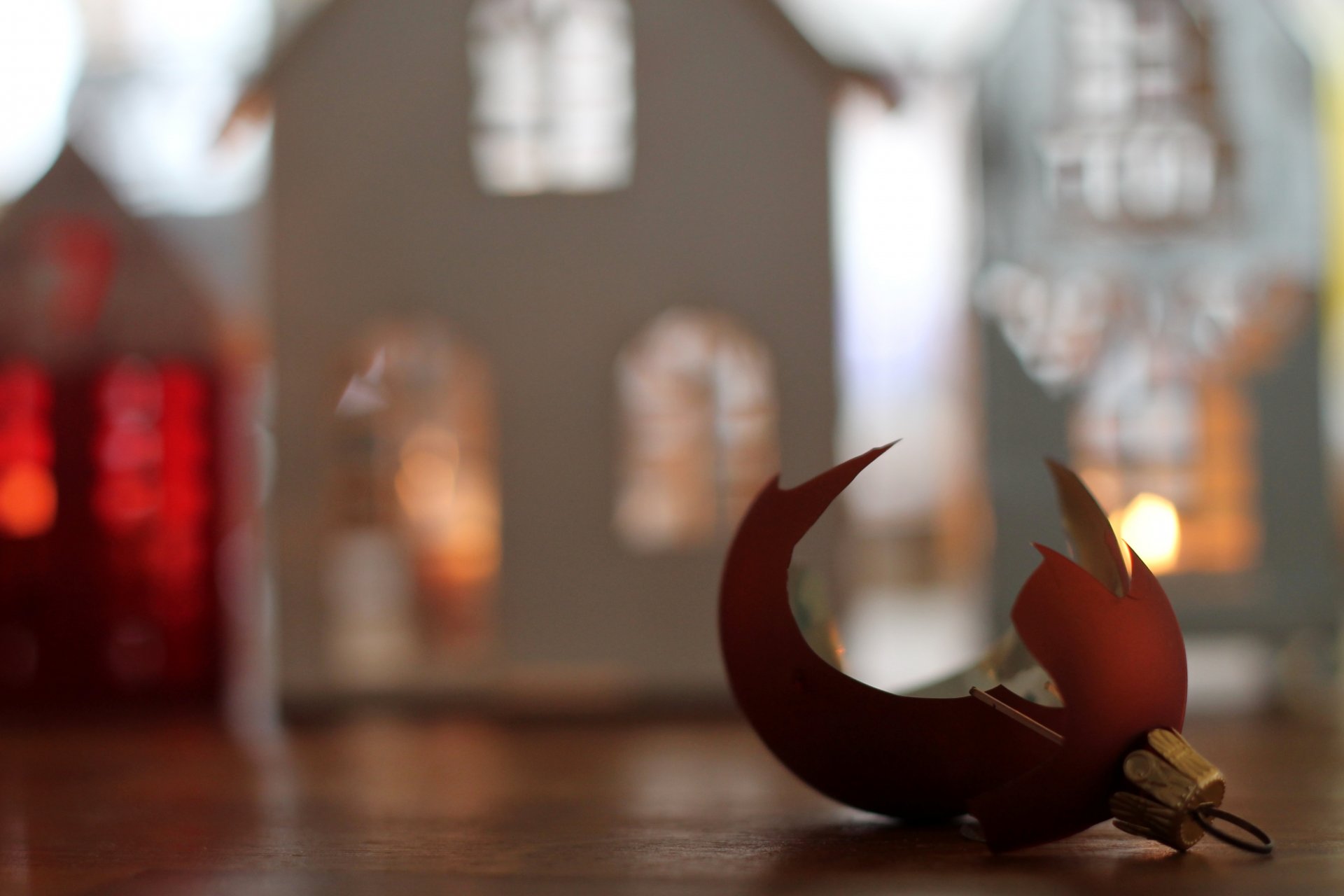 Juguete de Navidad roto en el fondo de una casa de papel