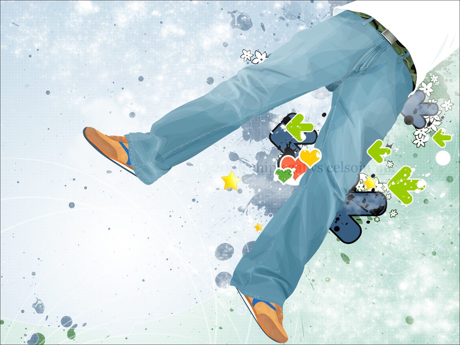 Hombre con jeans azules yace con flechas y vectoresHombre con jeans azules yace con flechas y vectores