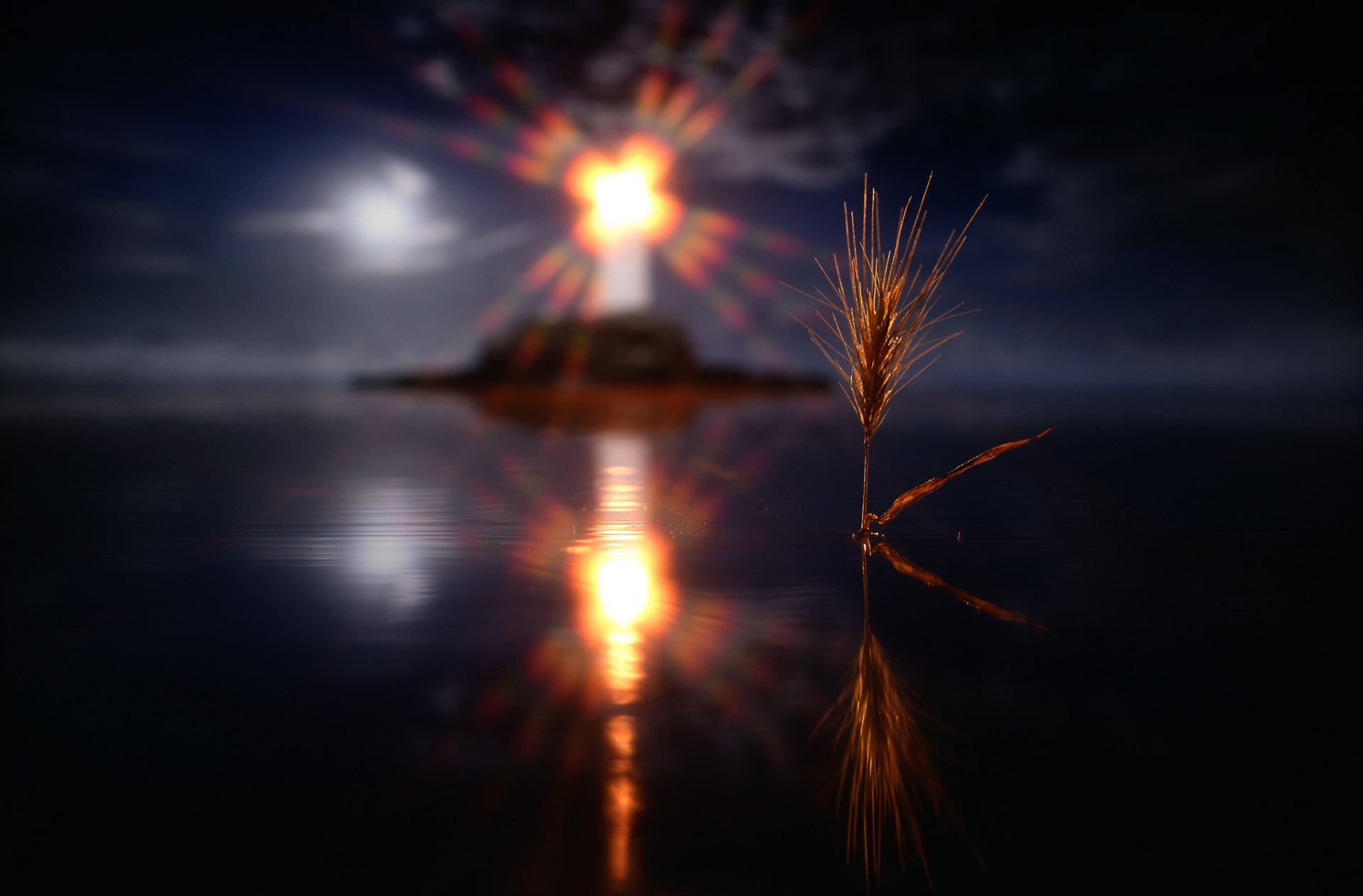 Sobre la ciudad nocturna, un rayo corta un denso velo de nubes marrones