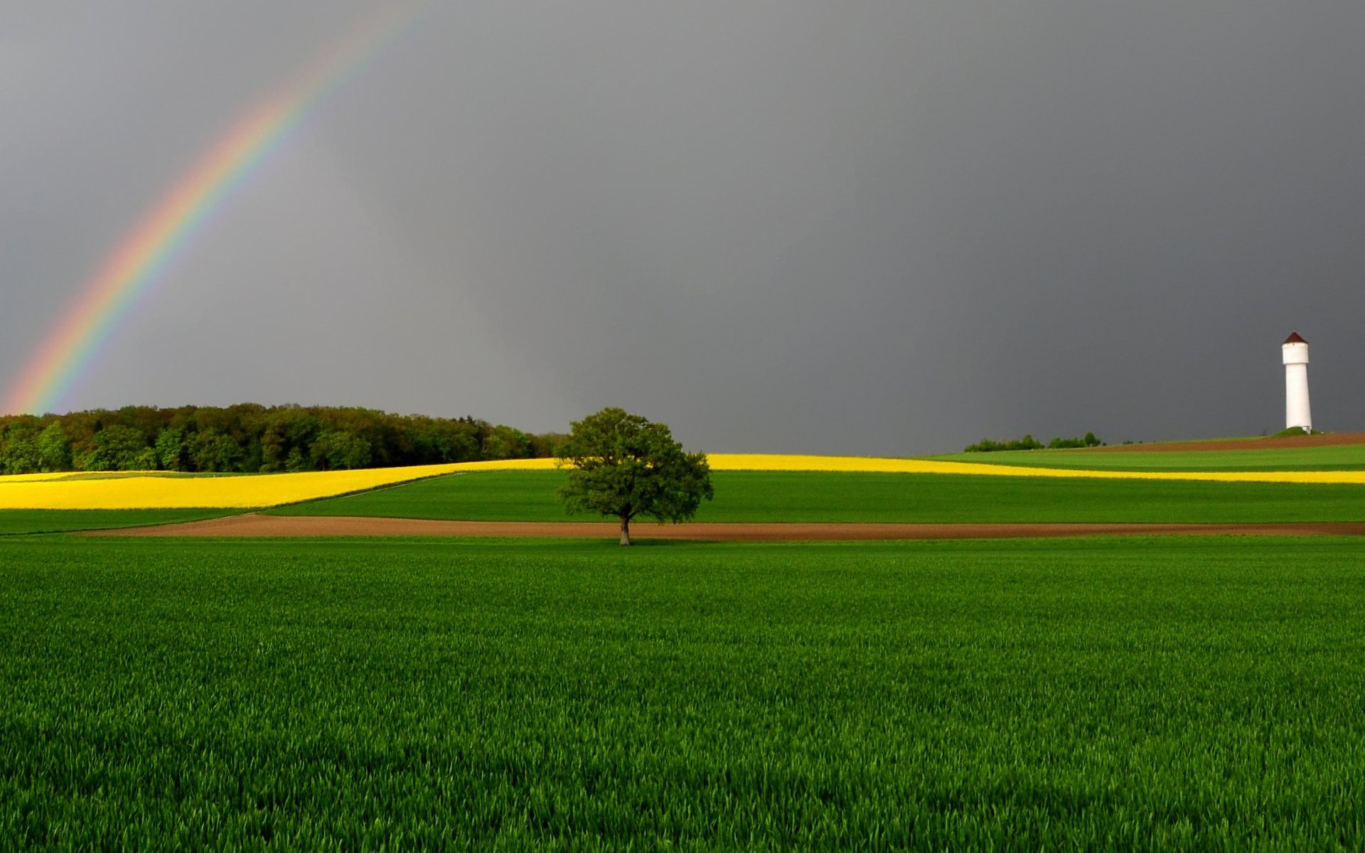 Arco iris sobre el campo después de la lluvia