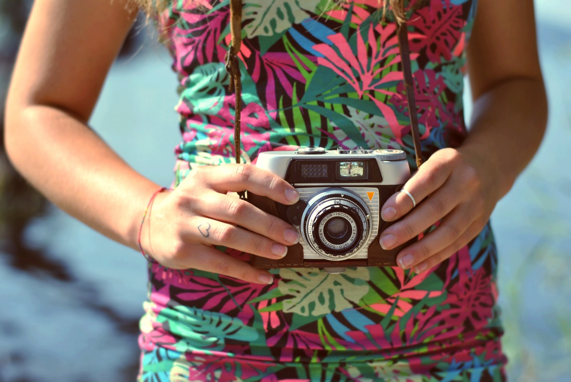 Morena chica con un cóctel en las manos, con una mirada sexy