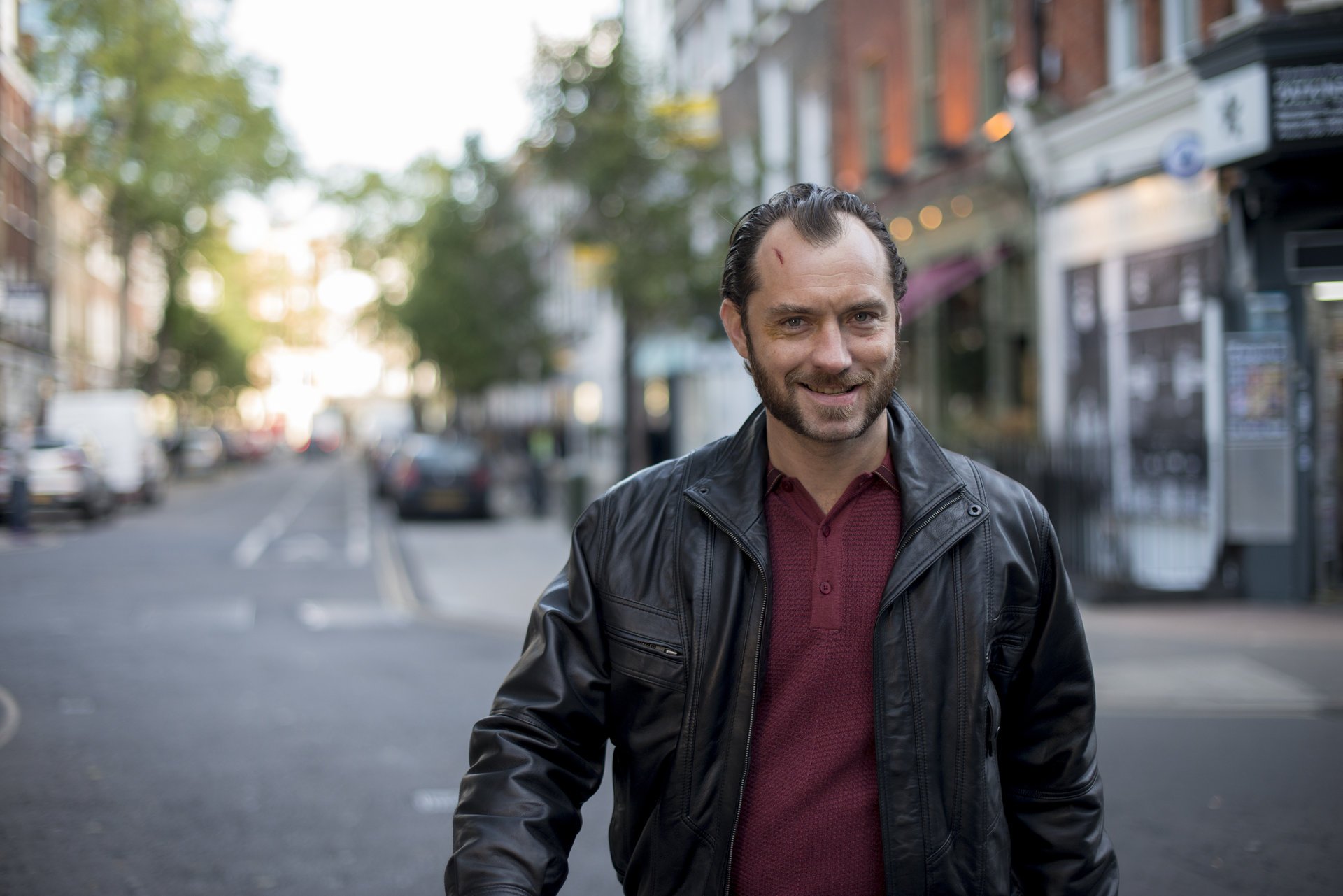 Hombre de pie en la oscuridad, sólo la mitad de la cara