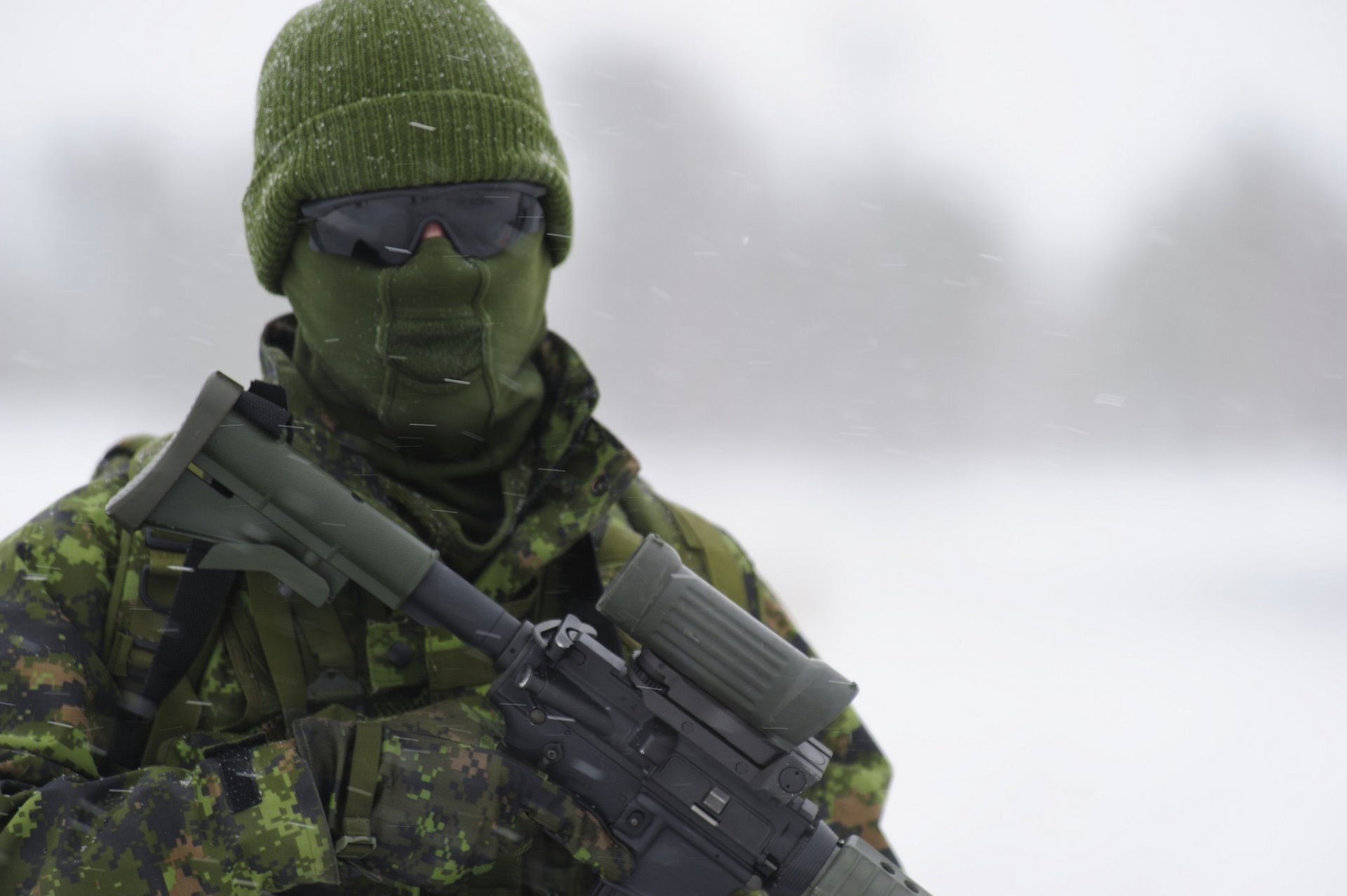 Soldado en equipo con un tornillo en un fondo borrosoSoldado en equipo con un tornillo en un fondo borroso